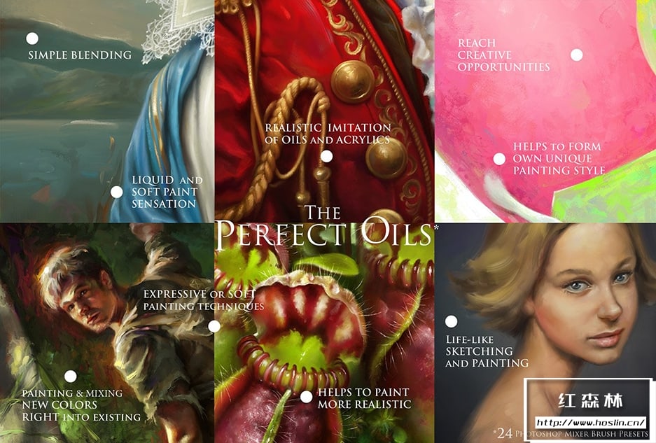 关于产品:Perfect Oils. 24 Photoshop Brushes