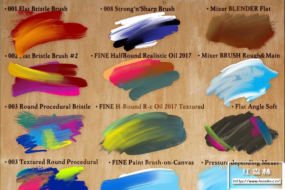 24 个 Photoshop(注意!仅限桌面版本)混合画笔 TPL 预设,用于模仿油画