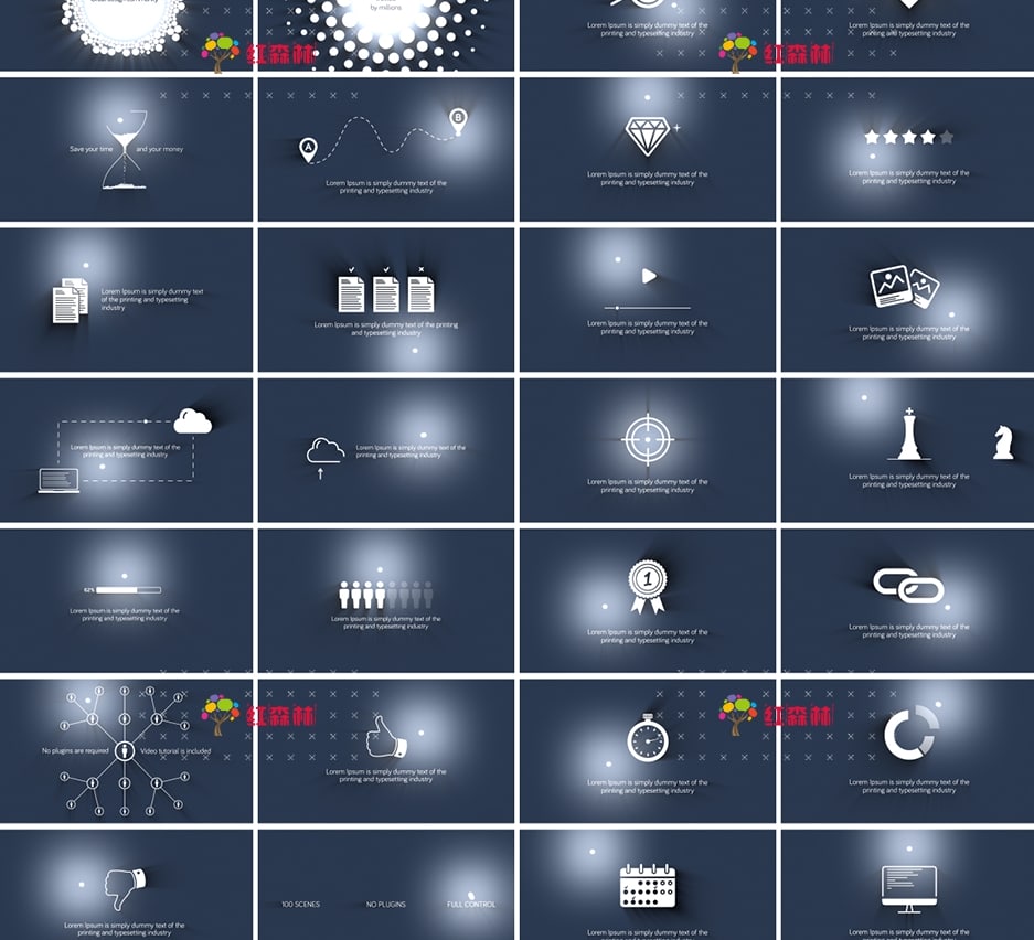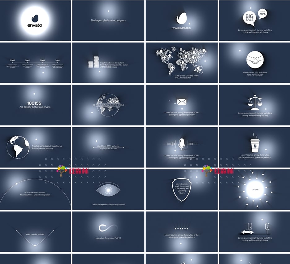100个高端优雅迷你简洁发光小球创意图表场景展示动画,模块化结构设计,使用简单,可以修改颜色,LOGO,文字等信息。包含视频教程。