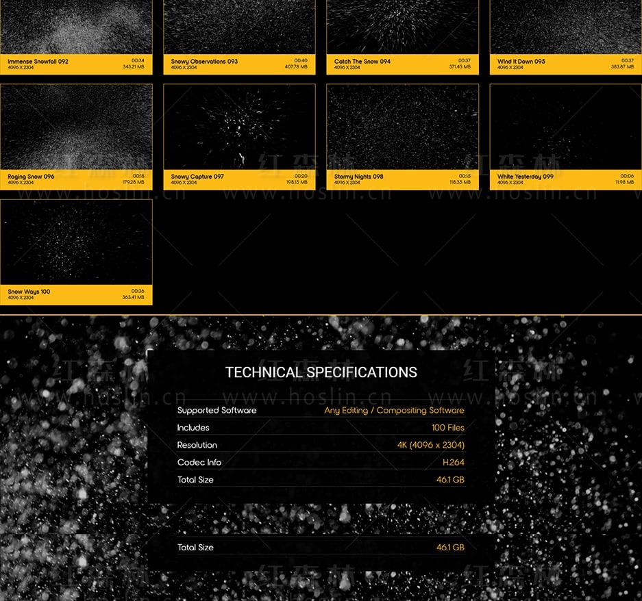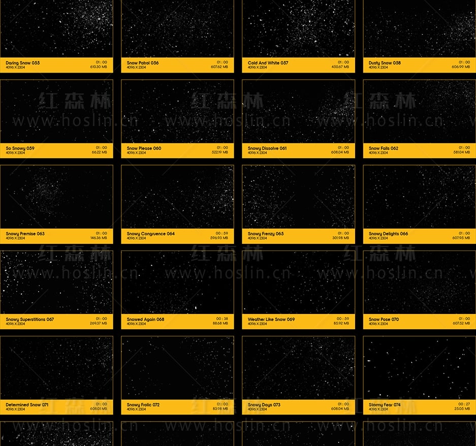 为寒冷做好准备,因为冬天来啦!在冬天没有什么比暴风雪更酷的了,这100个雪花飞舞4K超慢动作剪辑可以让您快速为您的项目添加冰冷的冰雪。Snow Storm使用最新的Phantom 4K Flex相机进行有机拍摄。1000FPS 将在编辑时为您提供惊人的灵活性,使用这些剪辑为您的项目添加影响力。令人惊叹的摄像机角度,高端品质和无数用途,让您的作品更迷人,更逼真。Snow Storm无需任何插件,适用于VFX特效合成、画面叠加或背景中使用;增强画面观赏性。分辨率:4096*2304,4K高清;无透明通道(可修改混合模式去黑底透明叠加使用)。