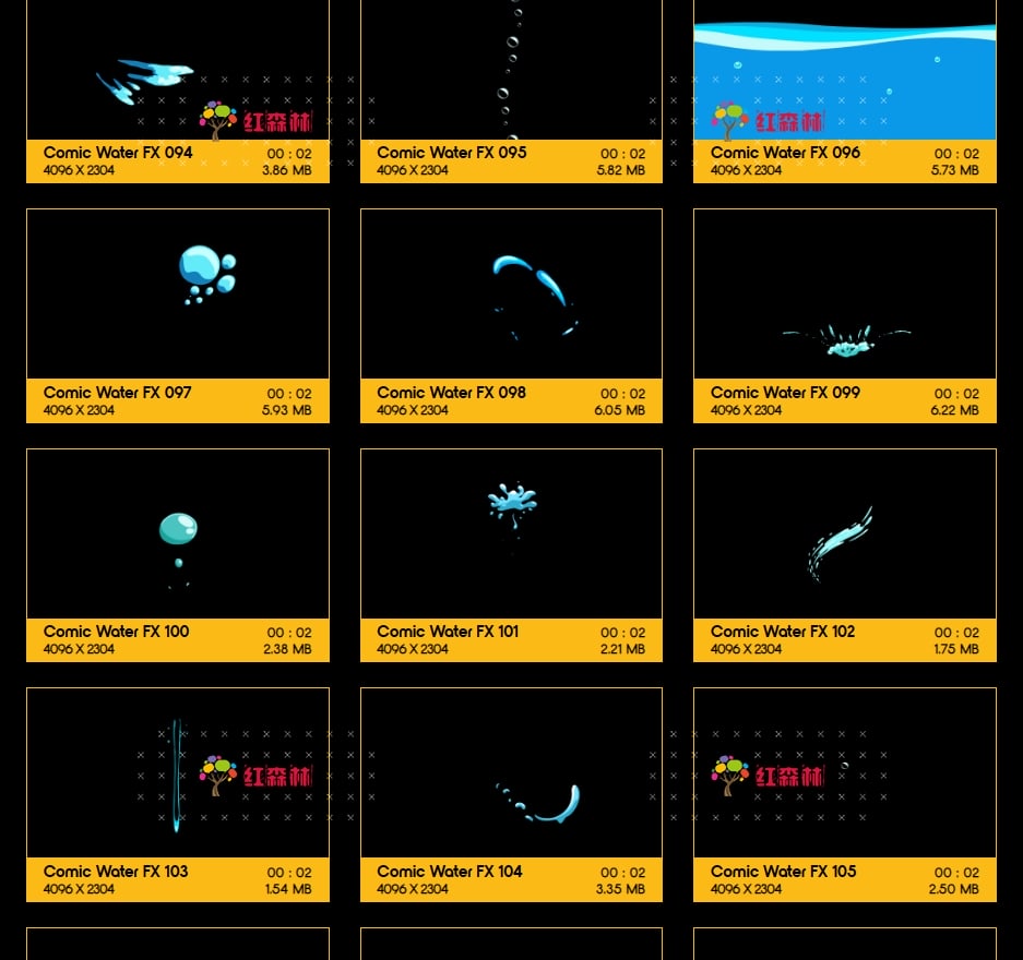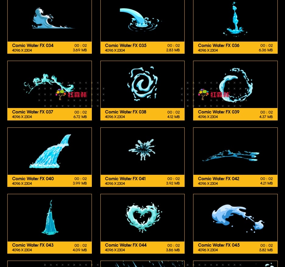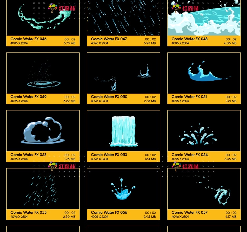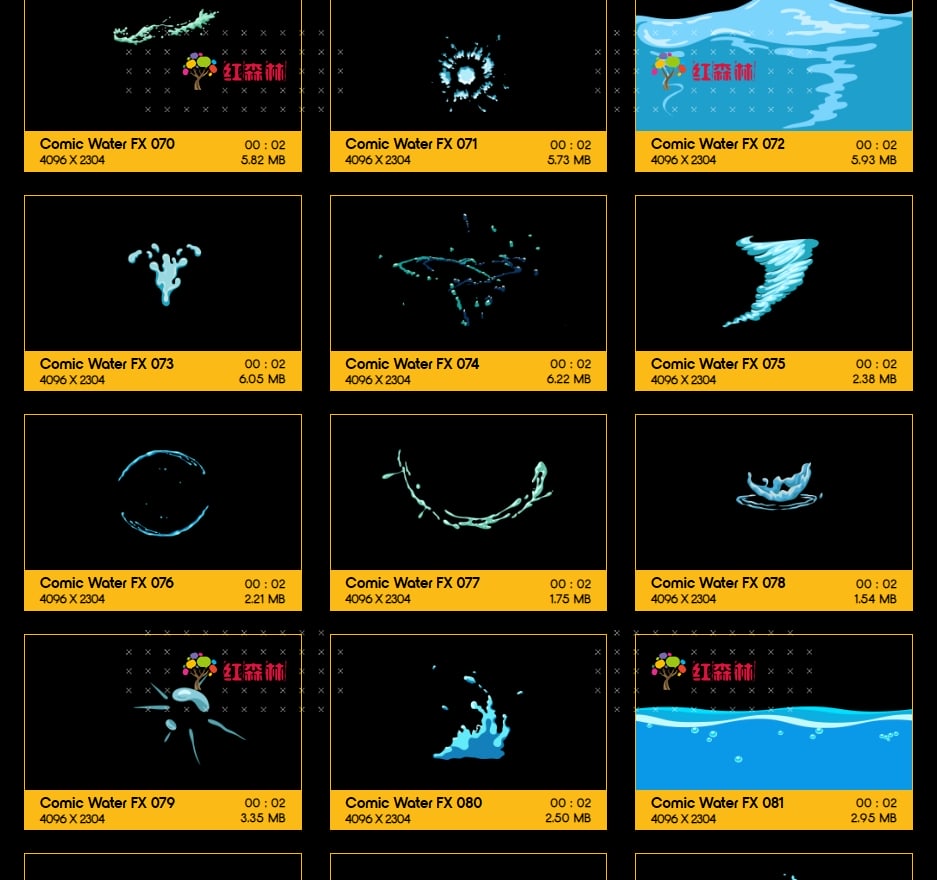 Comic Water FX包含109组卡通风格液体流体各种水流特效视频素材。有趣,欢快,活泼的动画,非常适合从文本显示到实际电影合成的所有内容。添加即时焦点和乐趣,众多的动画非常适合为您都项目添加MG特效氛围。这些动画使用简单,只需拖放和混合。我们做了繁重的工作,以确保每个剪辑都易于您使用。无需任何插件,适用于VFX特效合成、画面叠加或背景中使用;增强画面观赏性。分辨率:4096*2304,4K高清;它们都包含透明通道,可直接与您的视频叠加使用。还提供了每个单独动画的AE模板工程。