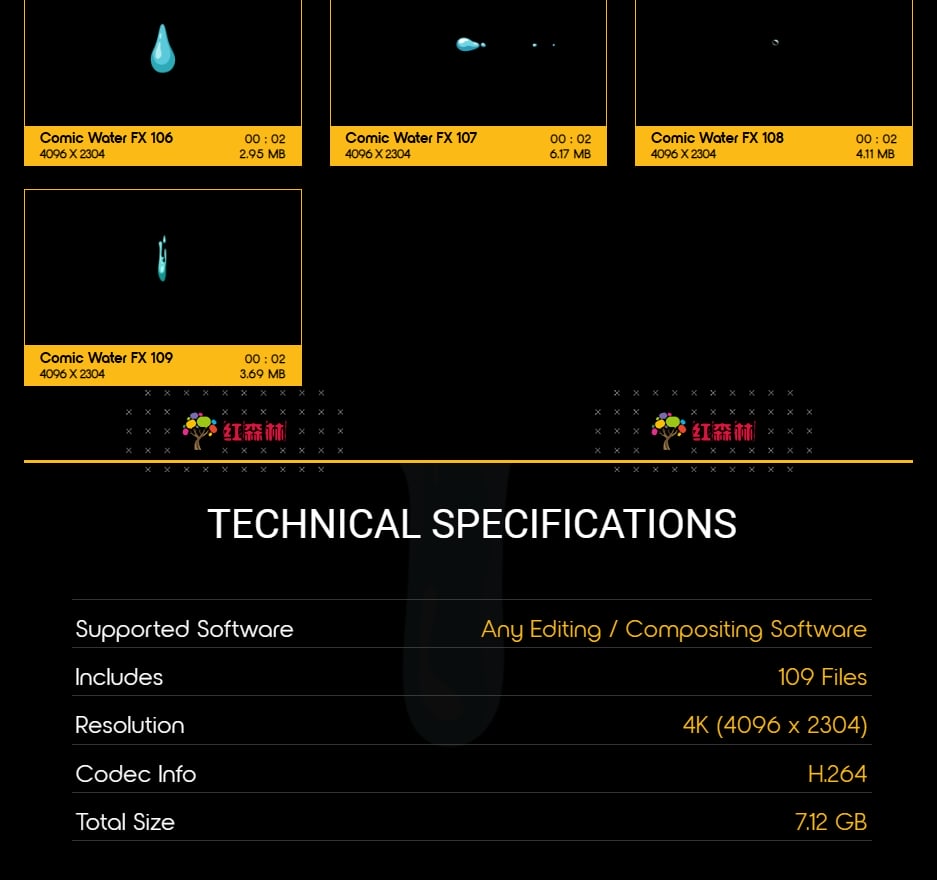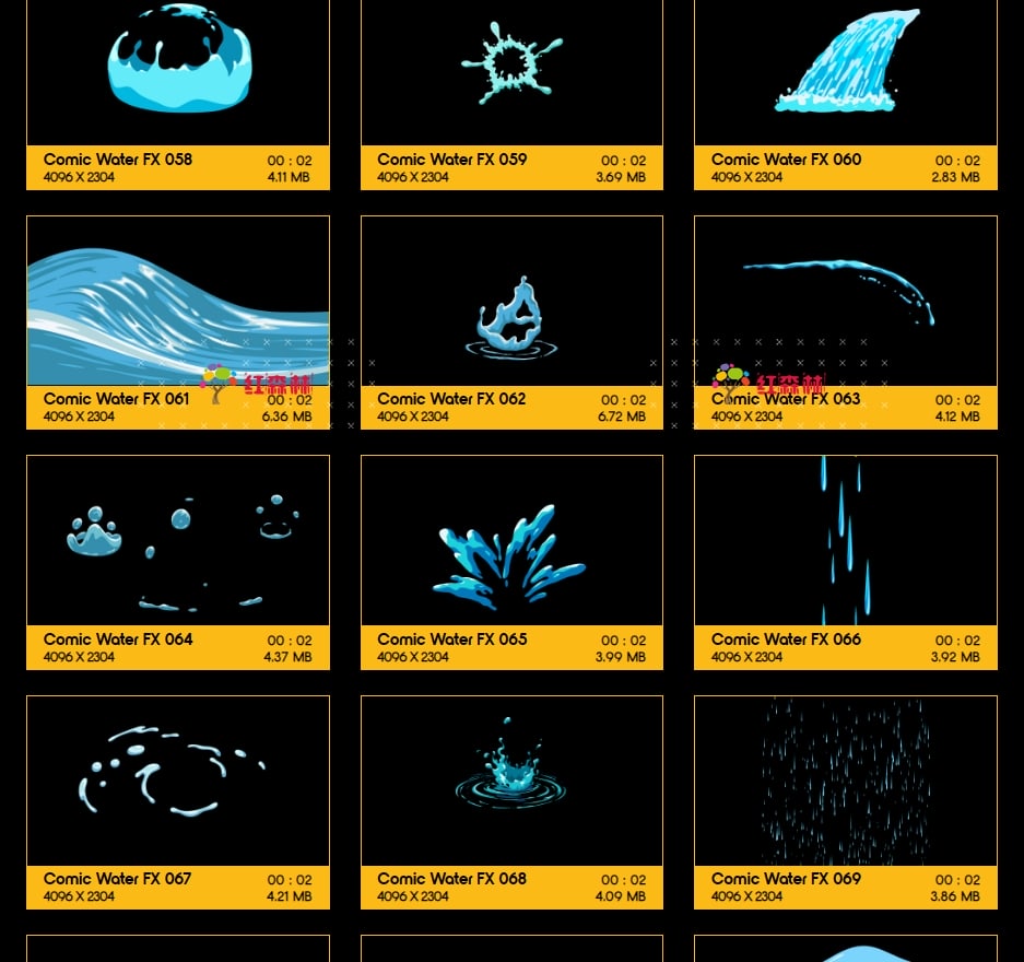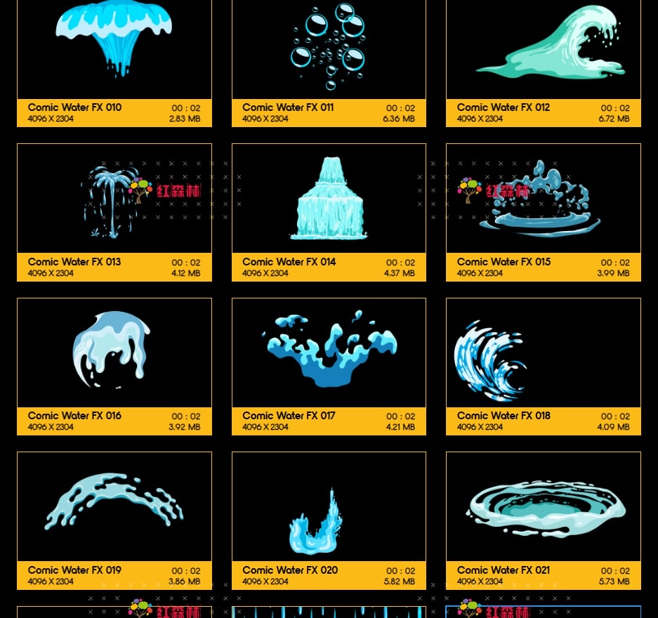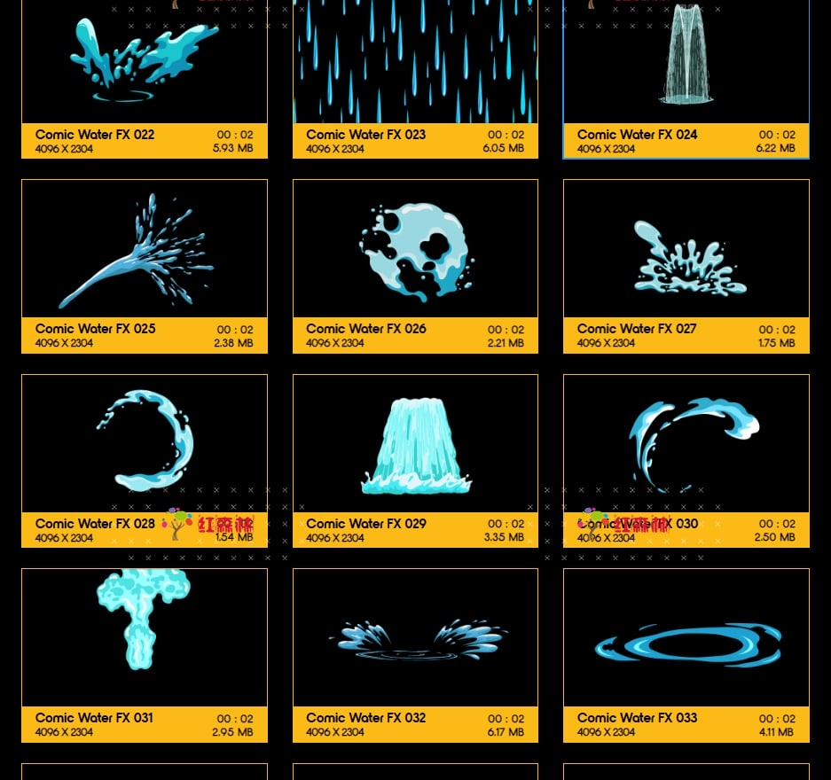 Comic Water FX包含109组卡通风格液体流体各种水流特效视频素材。有趣,欢快,活泼的动画,非常适合从文本显示到实际电影合成的所有内容。添加即时焦点和乐趣,众多的动画非常适合为您都项目添加MG特效氛围。这些动画使用简单,只需拖放和混合。我们做了繁重的工作,以确保每个剪辑都易于您使用。无需任何插件,适用于VFX特效合成、画面叠加或背景中使用;增强画面观赏性。分辨率:4096*2304,4K高清;它们都包含透明通道,可直接与您的视频叠加使用。还提供了每个单独动画的AE模板工程。