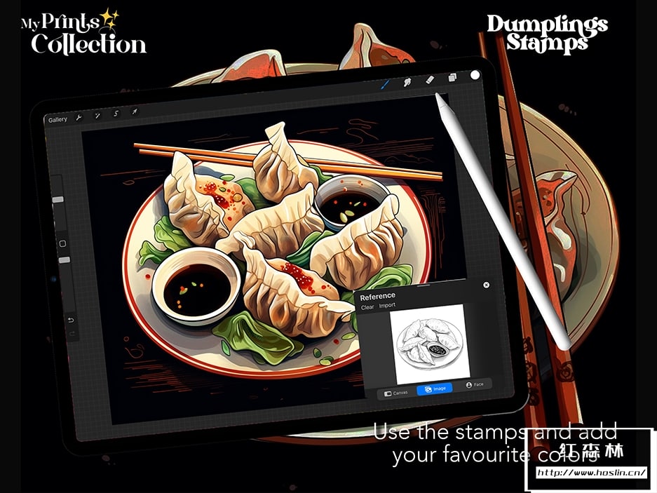 使用我们的 Procreate Dumplings 食品画笔,用饺子的美味为您的数字艺术增添色彩!将这些令人垂涎欲滴的美食的美味魅力融入您的艺术作品中。