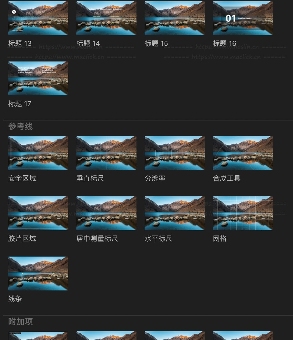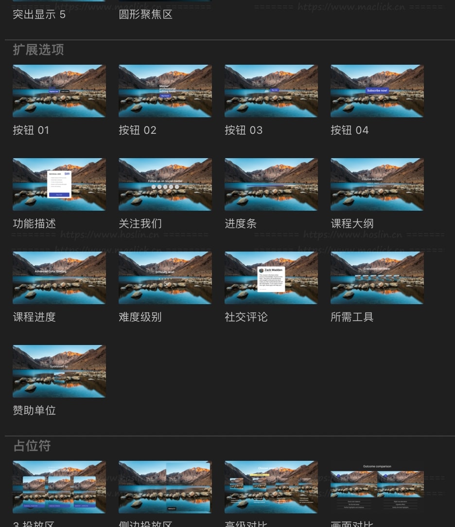 mTutorial拥有107种教育培训教学视频讲解标识图注细节重点介绍图形展示动画,简单的解决方案和有用的工具。您可以从多种预设中进行选择,轻松突出显示、指示或放大屏幕上的兴趣点,添加鼠标或键盘提示,并清晰地呈现技术细节。mTutorial 设计精良,简单的动画就可传达信息并吸引观众。创建比较,用基本信息注释您的项目并指出技术细节,这一切都归功于结合了排版、动态图形和素材拖放区域的多样化预设。使用 mTutorial 可广泛应用于教程和培训、远程课程和讲座、视频课程、专题频道、会议和活动等多种场景。mTutorial包含100个标题动画和7个简单的转场。