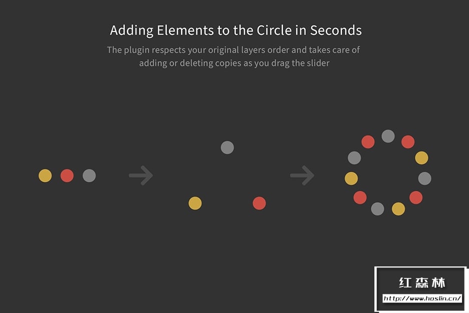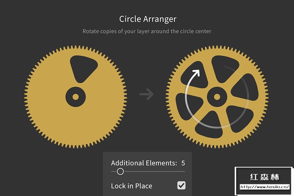 - 圆形排列器可从选定的图层创建圆形布局