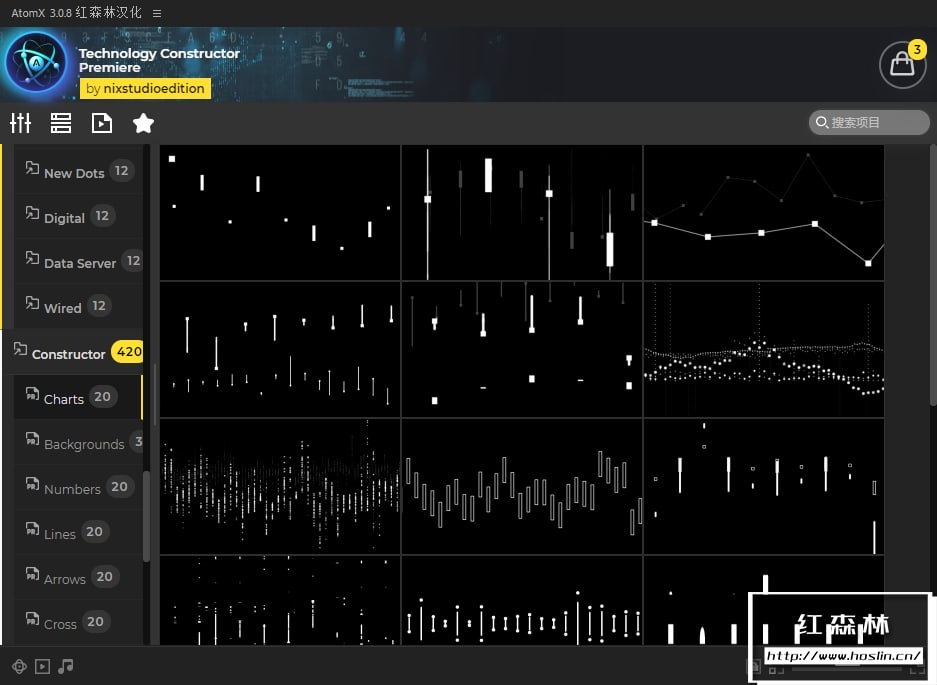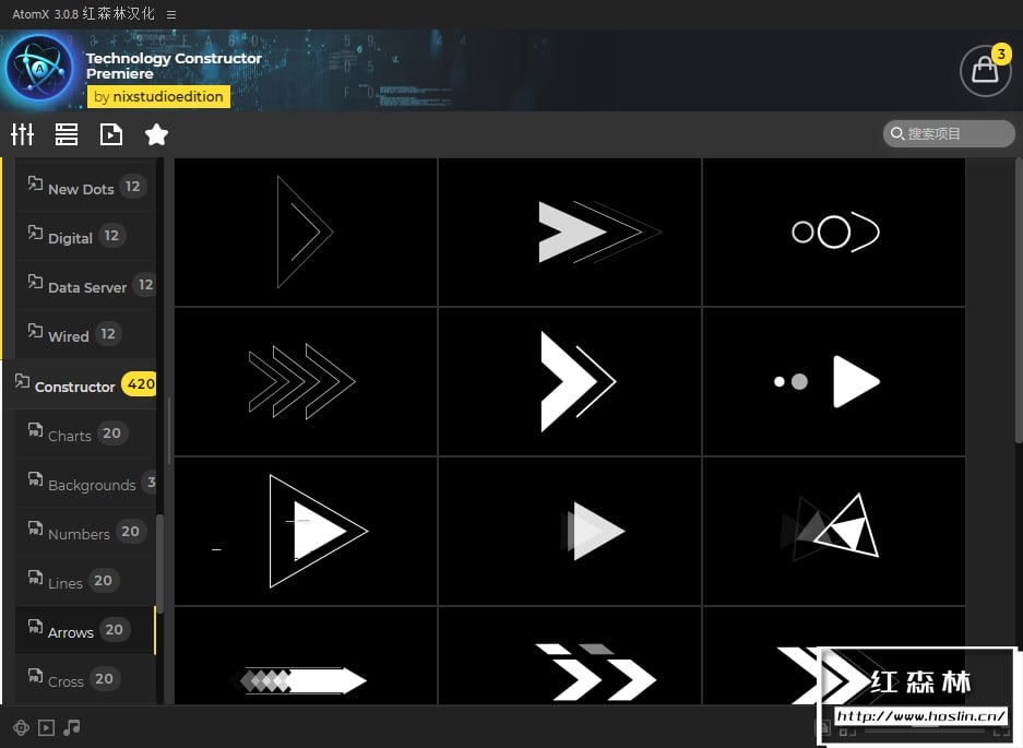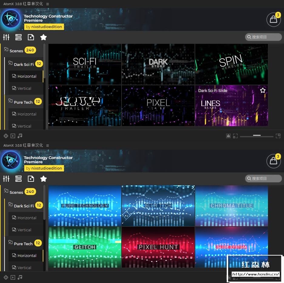 Technology Constructor Premiere是一款出色的工具,可让您直接在Premiere Pro中创建科幻和高科技视频。有超过 660+ 个元素可供一键使用。使用预制场景或使用实时预览和拖放系统构建自己的场景。通过AtomX扩展脚本调用(已包含),可视化操作,选择需要的元素点击即可加载到时间线,使用简单,包含视频教程。