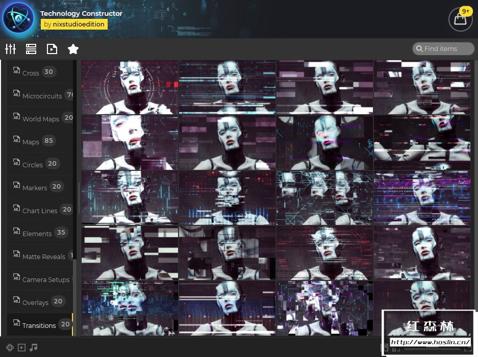 Technology Constructor for After Effects 是创建科幻和高科技视频的绝佳工具。现在更新到2.5版本,新增了36个场景、过渡和其他元素动画。只需单击一下,即可使用 660 多个元素。使用预制场景或通过实时预览和自适应分辨率构建您自己的场景。包含大量单独的HUD元素小动画和预置好的科技感文字标题场景动画(文字和颜色可随意修改)。在AtomX脚本中可直接预览动画效果,点击即可加载使用;元素也可以多预设组合叠加使用,制作出更多意想不到的效果。