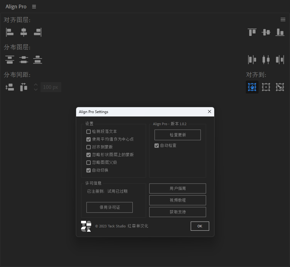 Align Pro脚本是一款增强的对齐工具,允许用户将图层与关键对象对齐或分布,设置图层之间的精确间距,忽略父图层以避免对齐错误,并在对齐文本图层时选择将其视为点文本或段落文本。此外,用户在对齐图层时可以选择计算平均中心点或确切中心点之间的差异。该工具还配备了一个响应式面板,根据用户的工作区偏好进行调整。