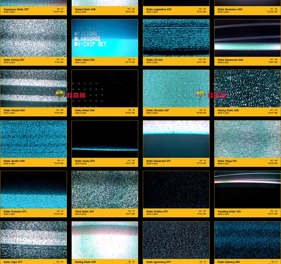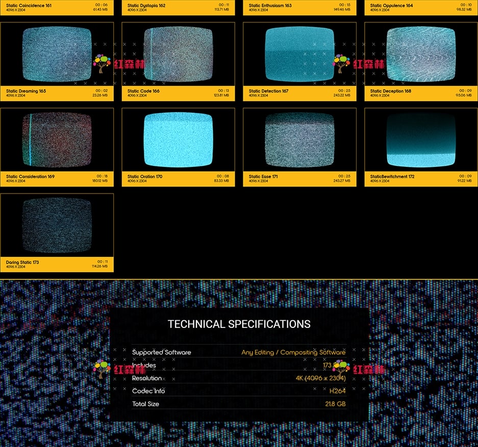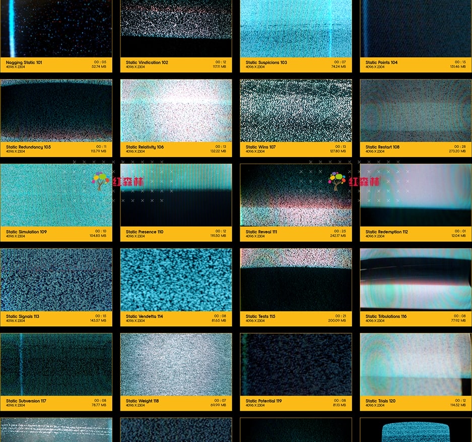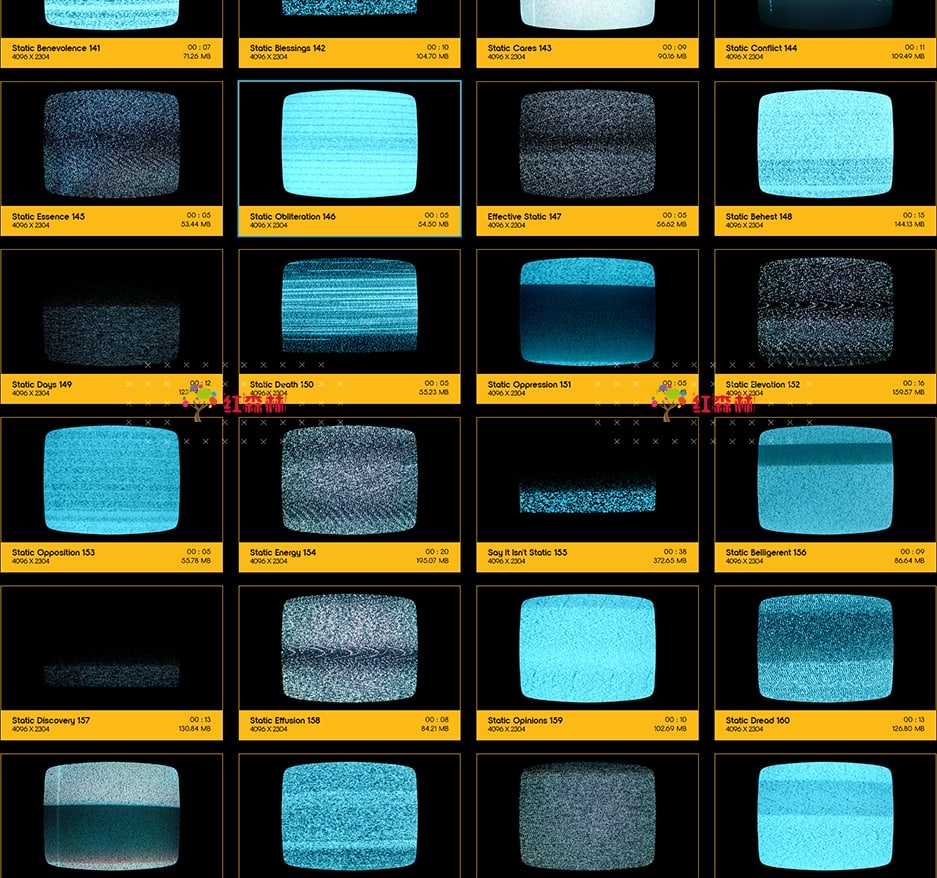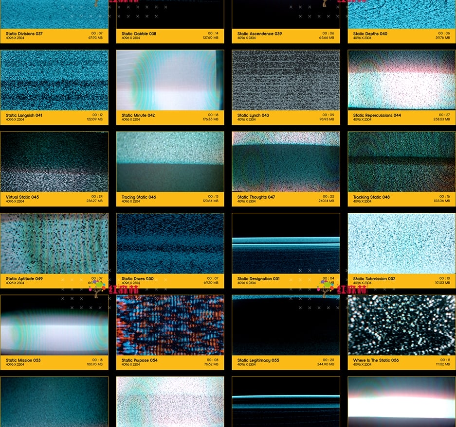 想让您的电视画面无法接收信号?快来看看这173个信号故障干扰电视雪花闪烁失真特效4K动画。无需破坏您的设备,这些故障会让您的视频以一种专业上不完整、故意不打磨的感觉组合在一起。这些动画使用简单,只需拖放和混合。我们做了繁重的工作,以确保每个故障剪辑都易于您使用。无需任何插件,适用于VFX特效合成、画面叠加或背景中使用;增强画面观赏性。分辨率:4096*2304,4K高清;Static Signals 没有透明通道,可修改混合模式(屏幕/滤色)即可与你的视频素材叠加使用。
