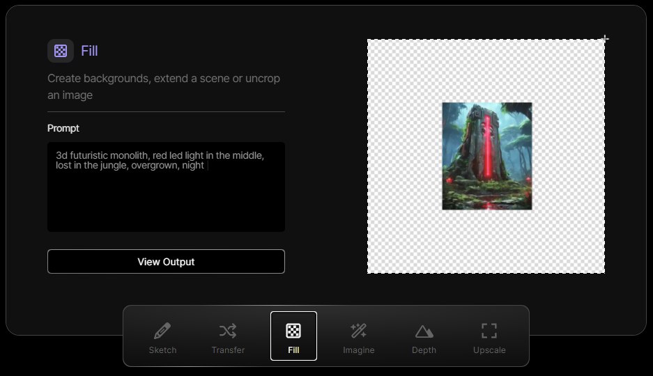 3、Fill:该功能类似PS的生成式填充功能,用户可以输入提示词,创建背景,自定义扩展区域的内容。
