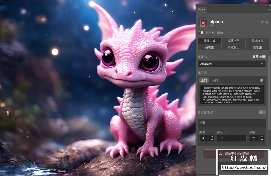 4、Imagine:使用Alpaca v3模型可以帮助用户在PS中实现高质量的文本转图像功能。