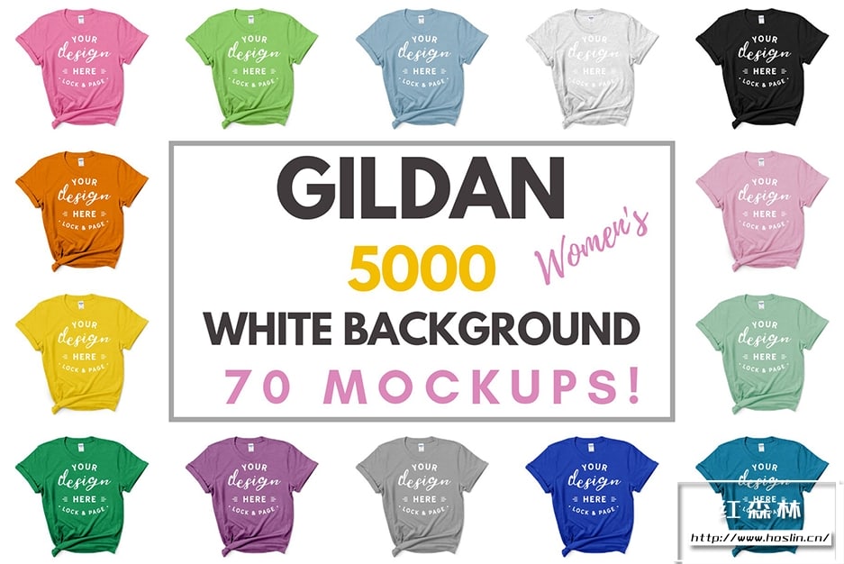 - GILDAN 5000 – 白色背景女性风格打结 T 恤