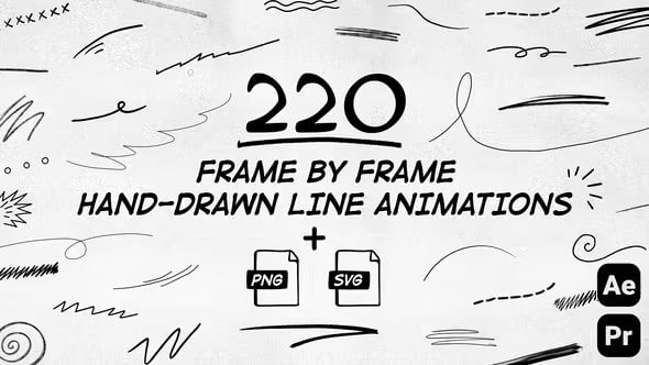 探索一组 220 个手绘逐帧线条动画,可轻松定制。只需单击一下即可轻松调整颜色、翻转、更改时间和修改速度。该集合还包括 PNG 和 SVG 文件,为您的创意项目增加灵活性。非常适合您的网站、社交媒体视频、演示、促销、介绍等等。包含视频教程。