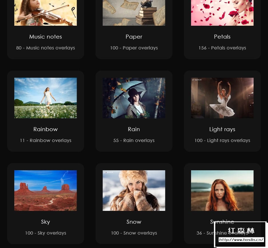 包含的类别:气球、黑色羽毛、散景、气泡、五彩纸屑、灰尘、白色羽毛、萤火虫、镜头光晕、烟花、多雾路段、树叶、灯笼、泄漏、信件、音符、纸、花瓣、彩虹、雨、太阳光线、天空、雪、阳光