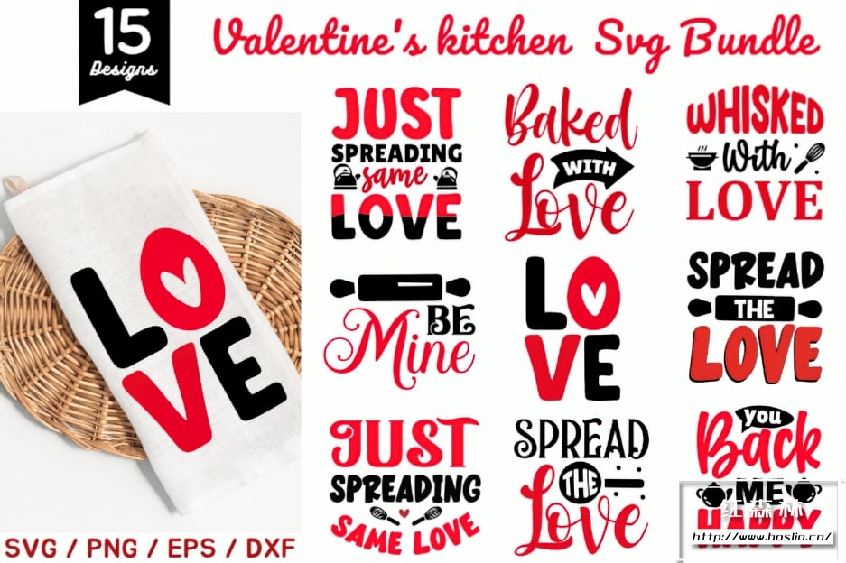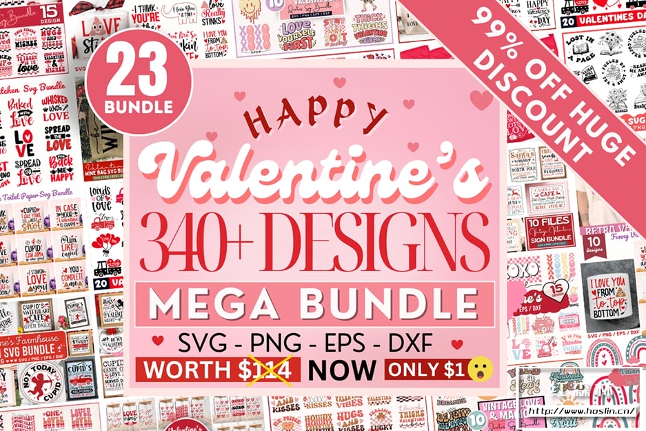 23套340+情人节艺术设计矢量花字图案徽标形状元素,文件格式包括:SVG、EPS、PNG 和 DXF。