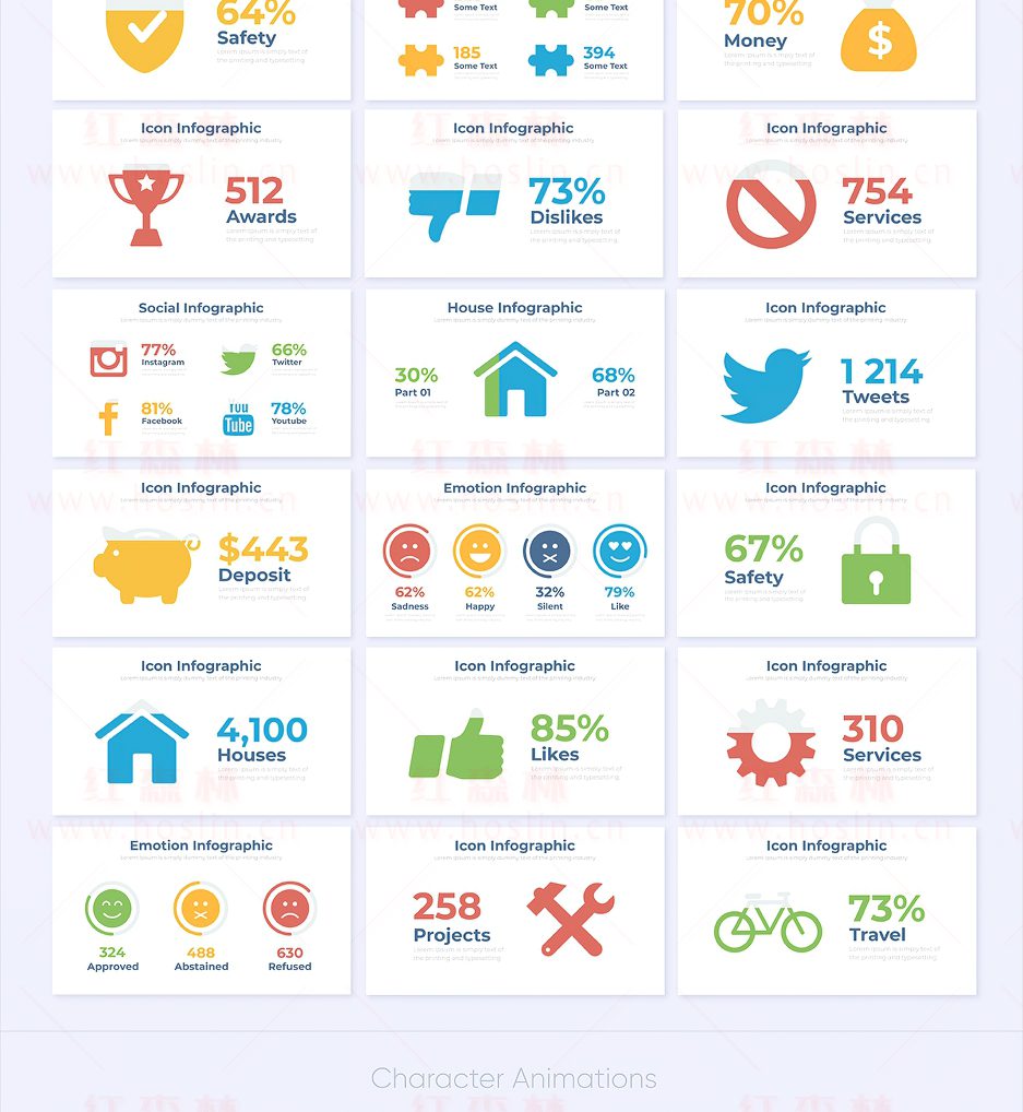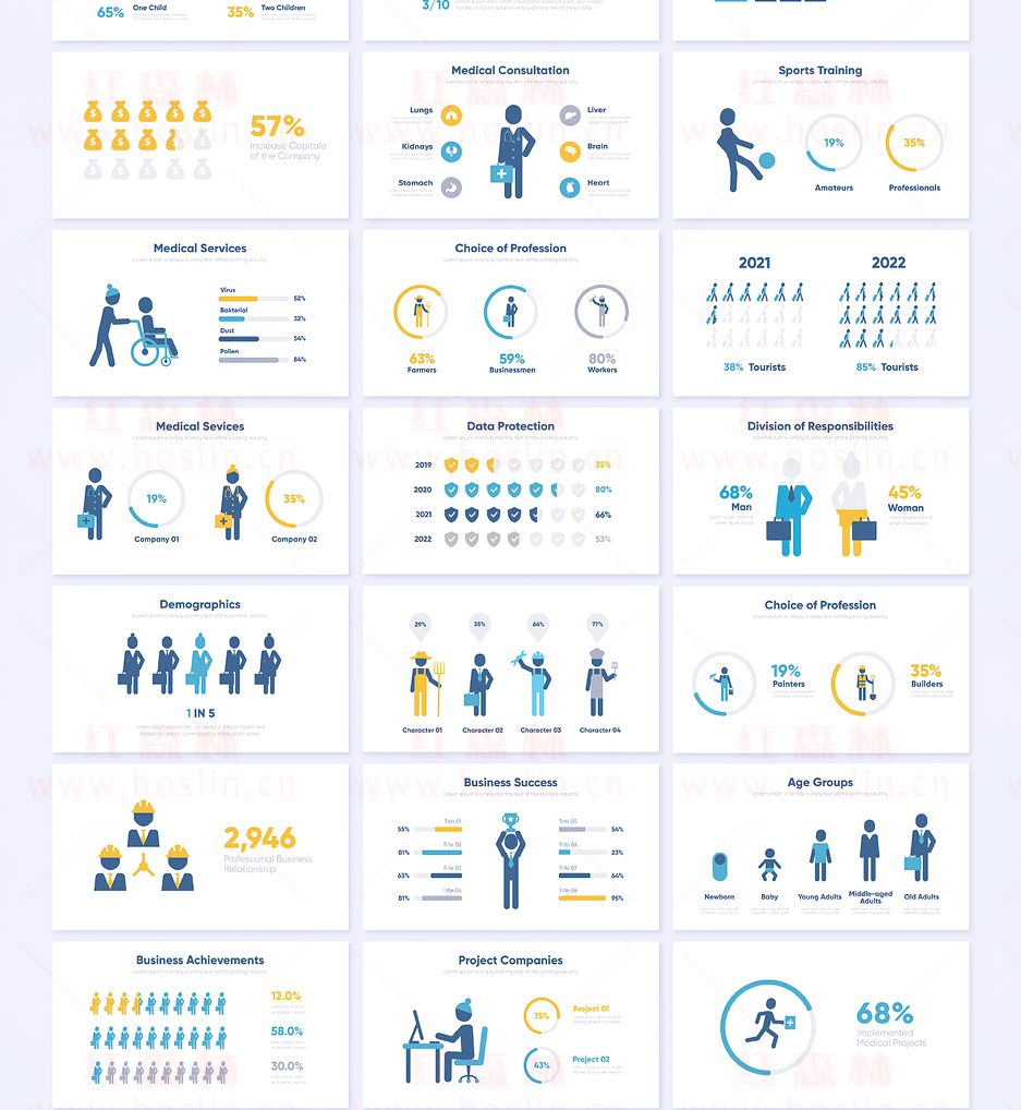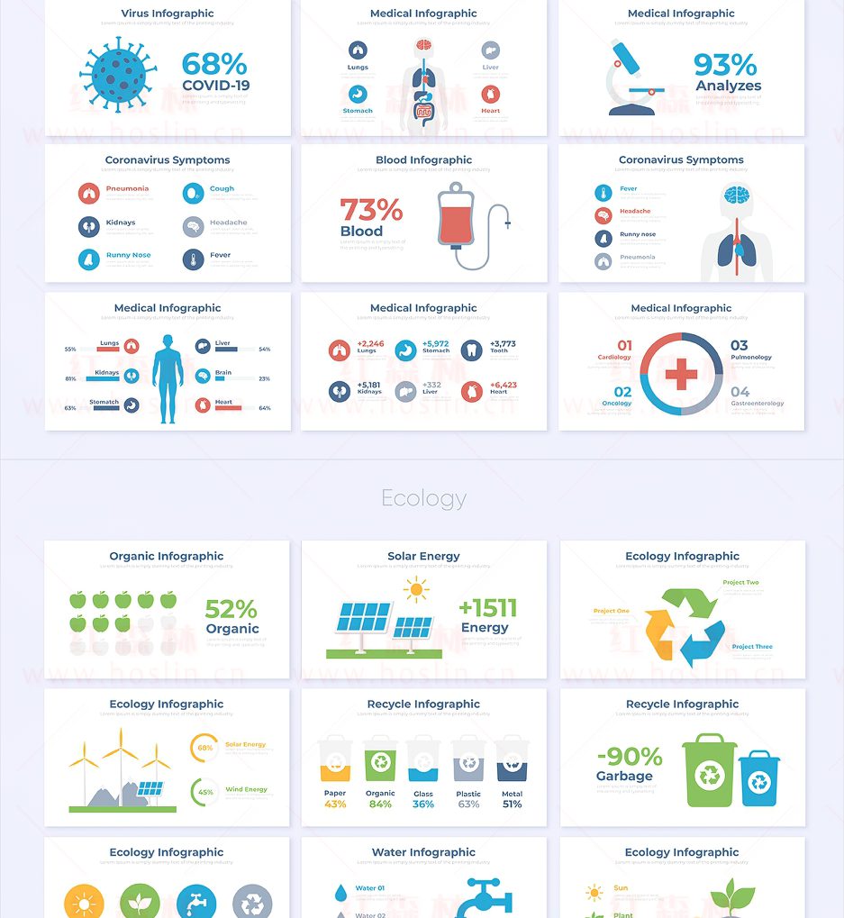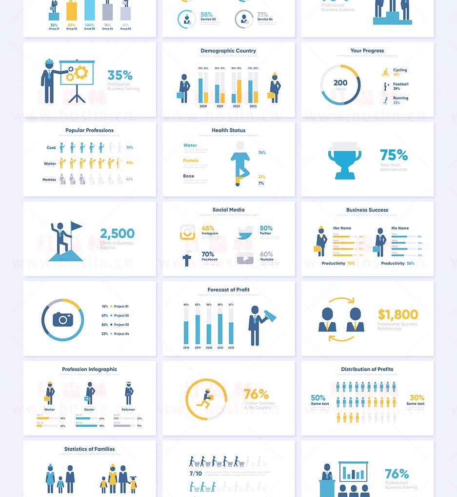 Infographics Pack v2 现在包含25+ 不同类别:面积图、三角图、折线图、条形图、柱形图、圆形图、关于公司、文件夹、团队、时间线、设备、版式、地图、等距、医疗的、商业、生态、人们、图标图、过程、社交媒体、人物、象形文字、音效和大量的单一元素:背景、呼出、人物、象形图、图表、设备、旗帜、图标、等距、地图、标记和别针、医疗的、各种各样的、人们、文本块、过渡、版式等。