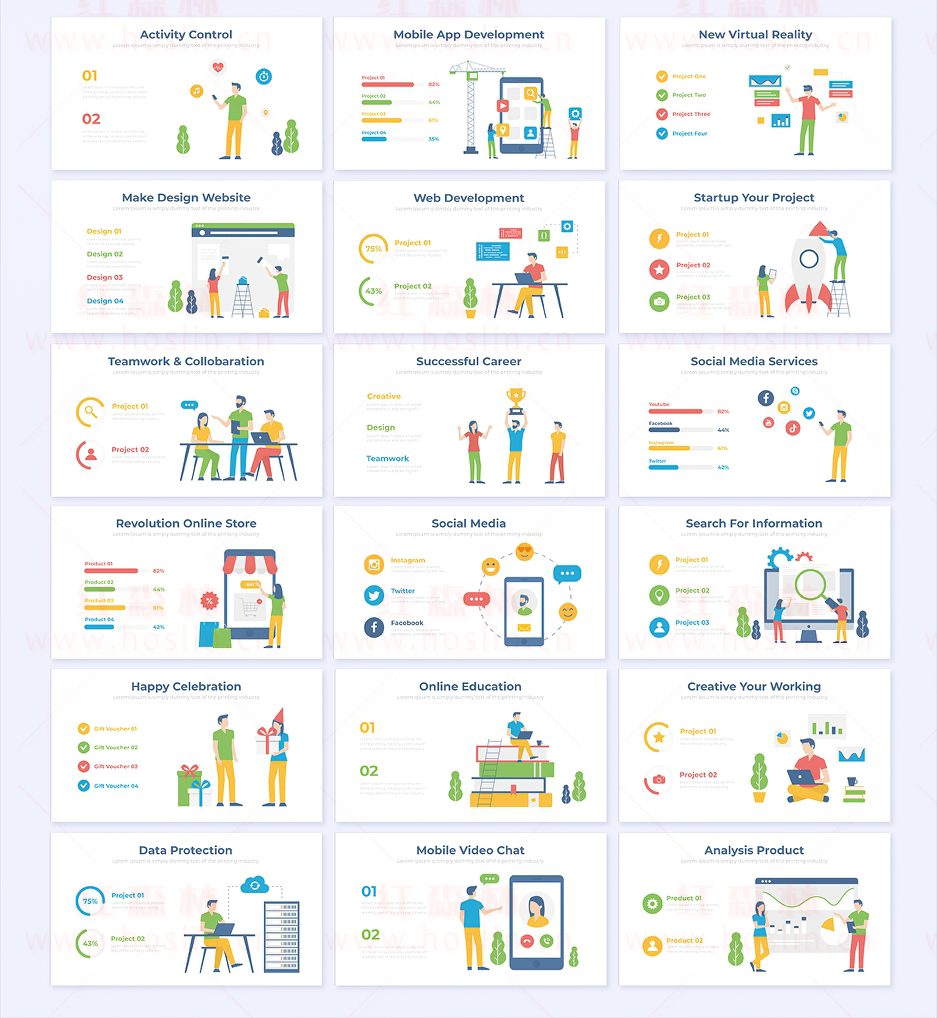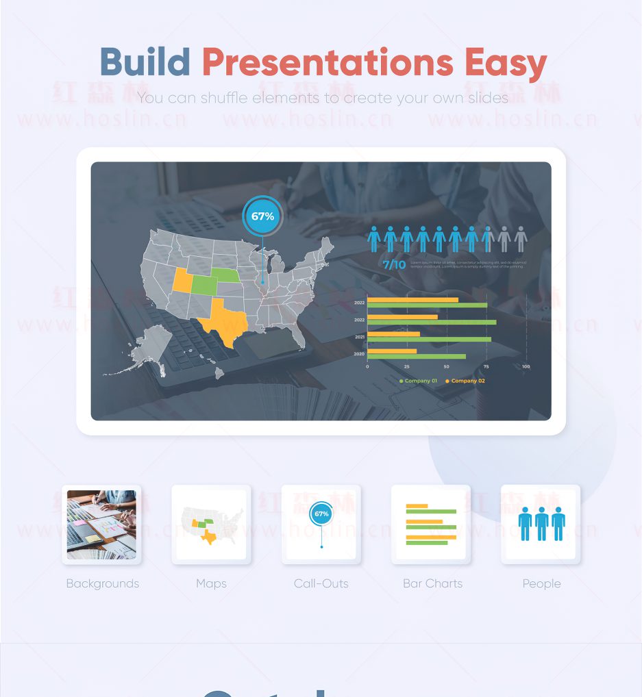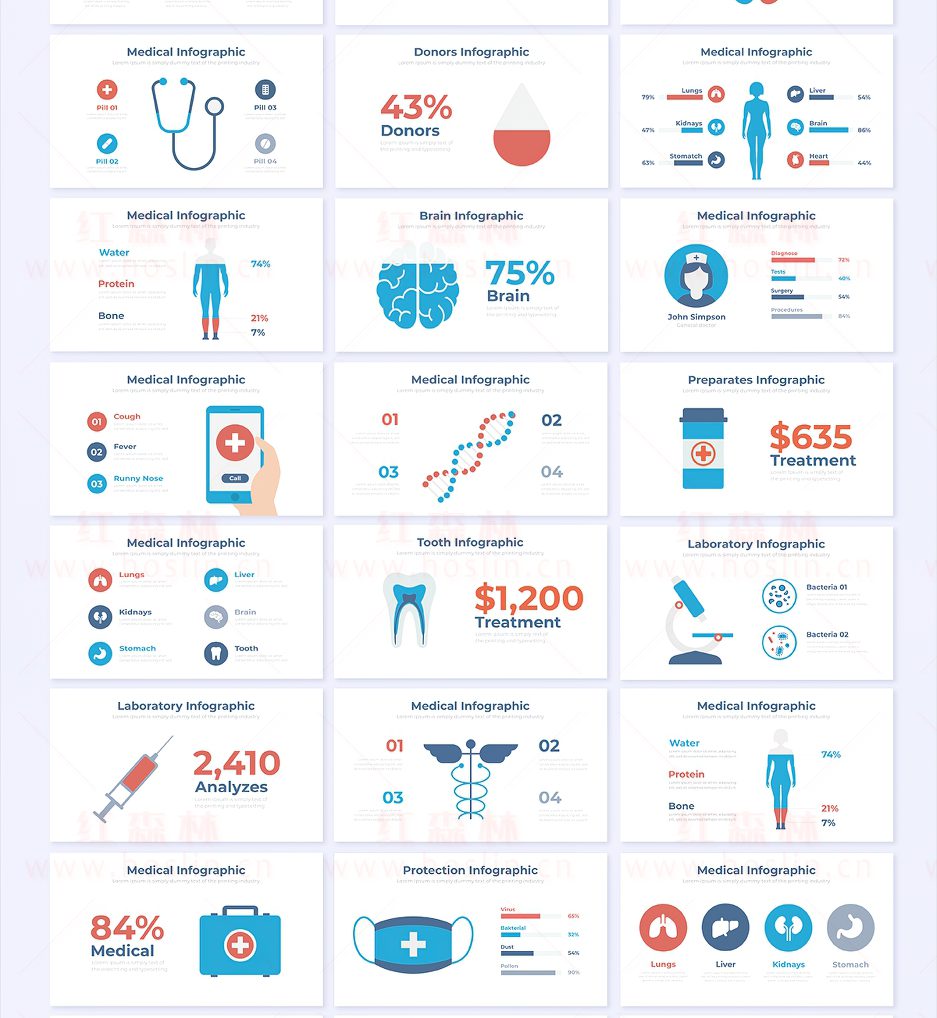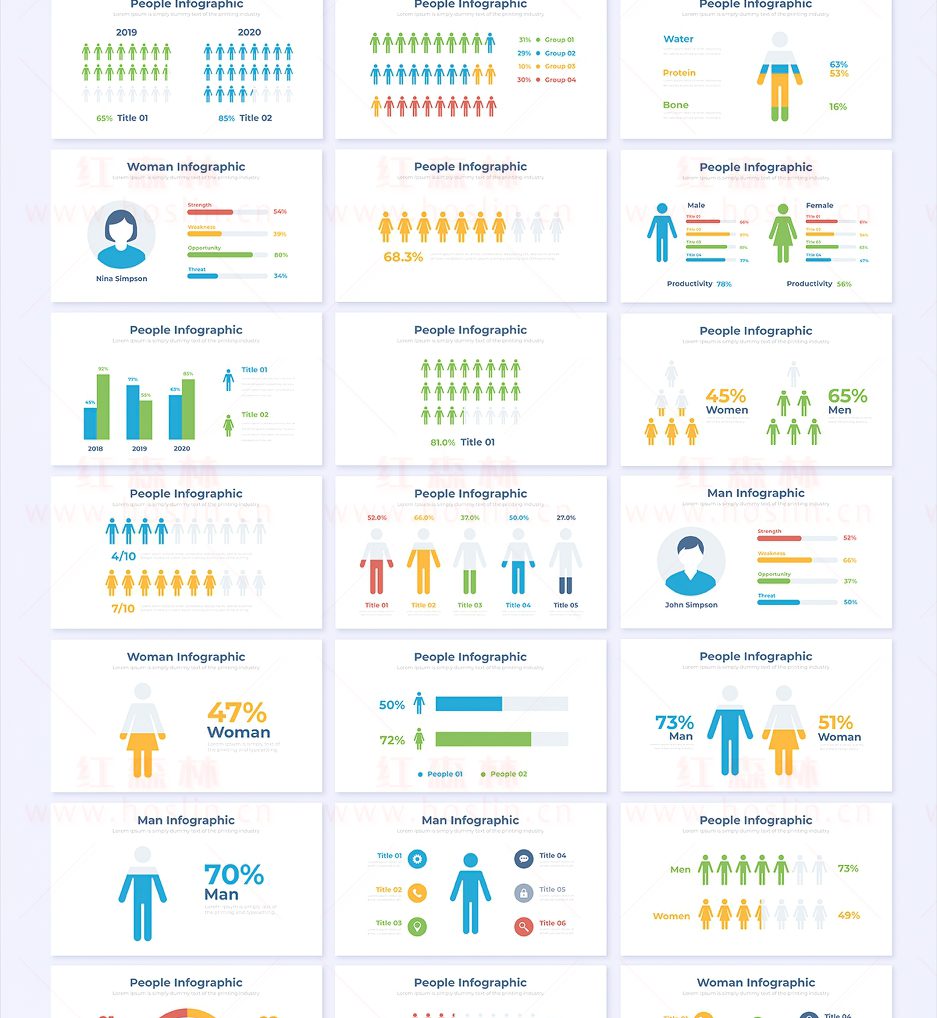 Infographics Pack v2 现在包含25+ 不同类别:面积图、三角图、折线图、条形图、柱形图、圆形图、关于公司、文件夹、团队、时间线、设备、版式、地图、等距、医疗的、商业、生态、人们、图标图、过程、社交媒体、人物、象形文字、音效和大量的单一元素:背景、呼出、人物、象形图、图表、设备、旗帜、图标、等距、地图、标记和别针、医疗的、各种各样的、人们、文本块、过渡、版式等。