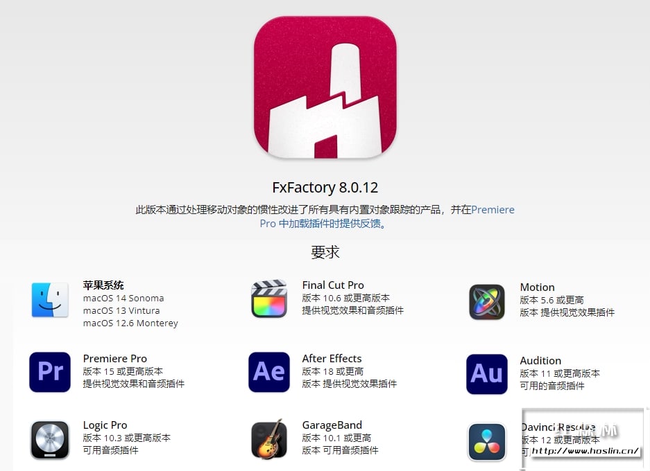 - 程序版本号 FxFactory 8.0.12.7728(英文)