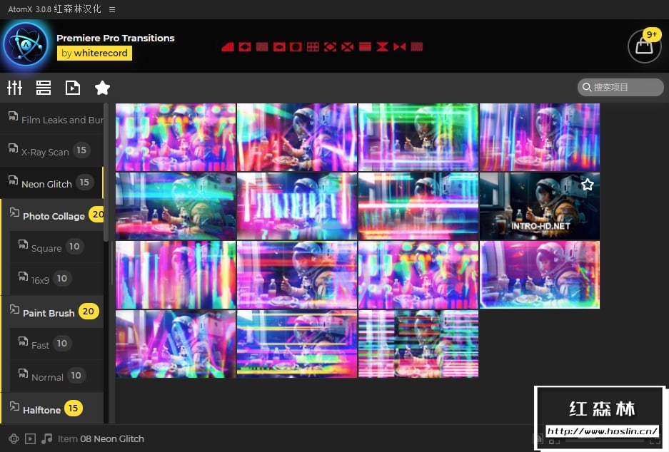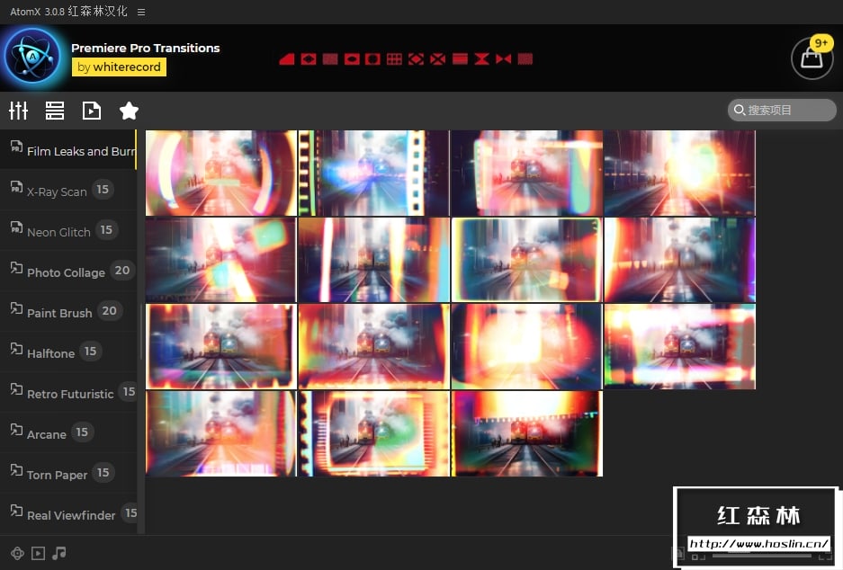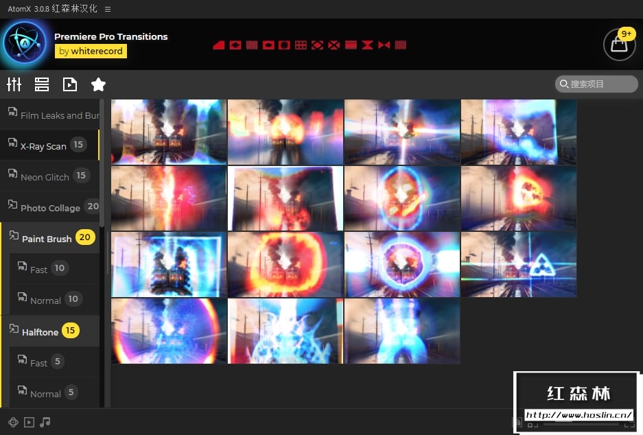 复古电影胶片故障纸张撕裂拼贴定格转场动画,拥有160多种种预设,15个撕破的纸张、15个胶片泄漏和烧伤、20个画笔、15个神秘转场、20个照片拼贴、15个复古未来、15个半色调、15个 X 射线扫描、15个霓虹灯故障、15个真实取景器等更多转场。通过AtomX 汉化版脚本调用预设,可视化预览,拖放到时间线即可直接使用。
