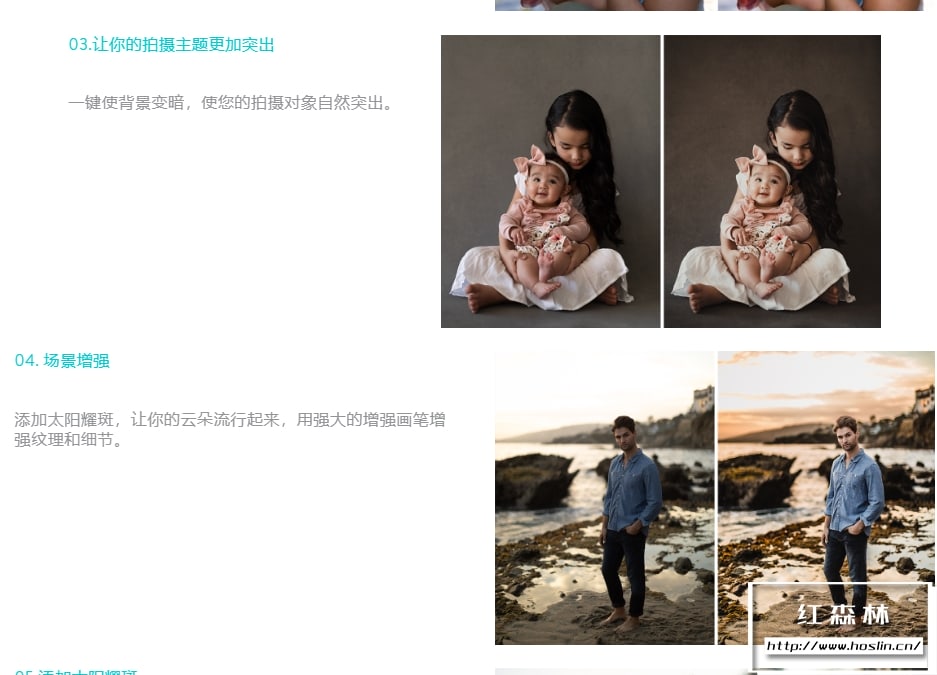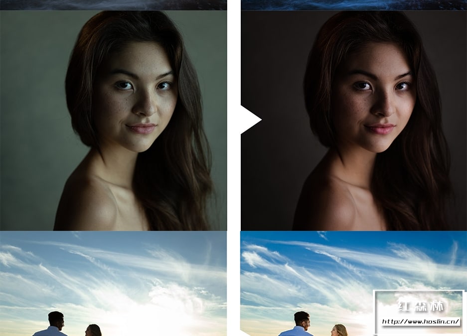 AI Retouching Toolkit 为 Lightroom Classic 带来了 31 个由 AI 驱动的预设,让您触手可及的全新创意可能性。从完全润饰和增强肖像的一键式预设,到可自动提亮眼睛、平滑肤色、减淡和加深拍摄对象、增强背景、加深天空等的单独预设!