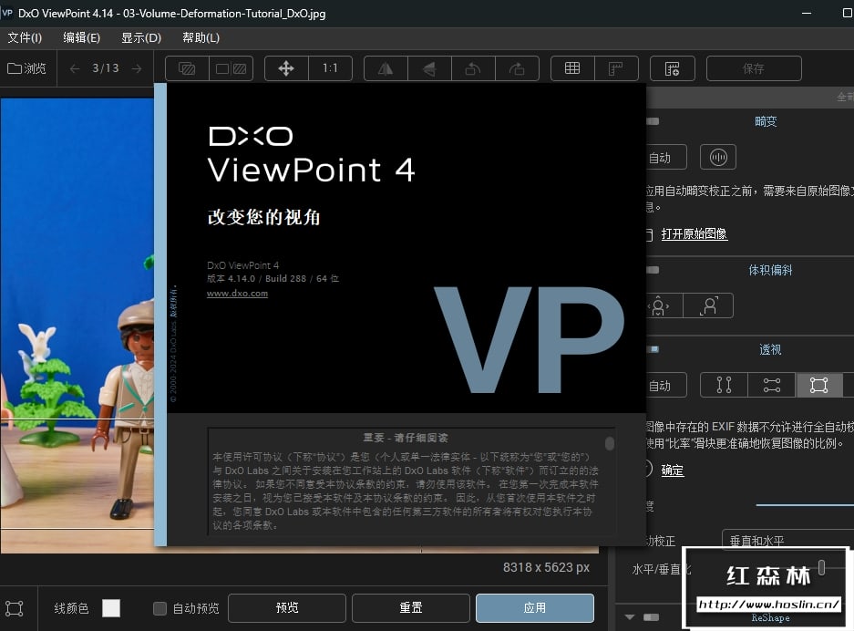 - 在某些照片中,细节极为重要。使用 D.x.O ViewPoint 4 的创新 ReShape 工具,修复瑕疵从未如此简单。选择一个适合图像的“畸变网格”,只需拖动点即可校正框内的各个元素。一瞬之间,轻松掌控全局。