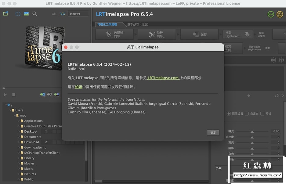 LRTimelapse Pro v6.5.4 Build 896 Mac 中文版是一款专业的延迟摄影编辑渲染工具,具有高清输出、简单易用、无缝转换等特点,程序可以配合 Adobe Lightroom,Adobe Camera RAW 和 Adobe After Effects 等程序完美配合使用用来制作延时摄影, 可以做到平衡曝光不一致( 去除闪烁等现象)关键帧参数自动过渡的功能。是非常强大的一款延迟摄影工具! LRTimelapse Pro可以将您的影片提升一个水准。此外,LRTimelapse Pro 也是为你的延时电影抗闪烁的最好的工具之一。