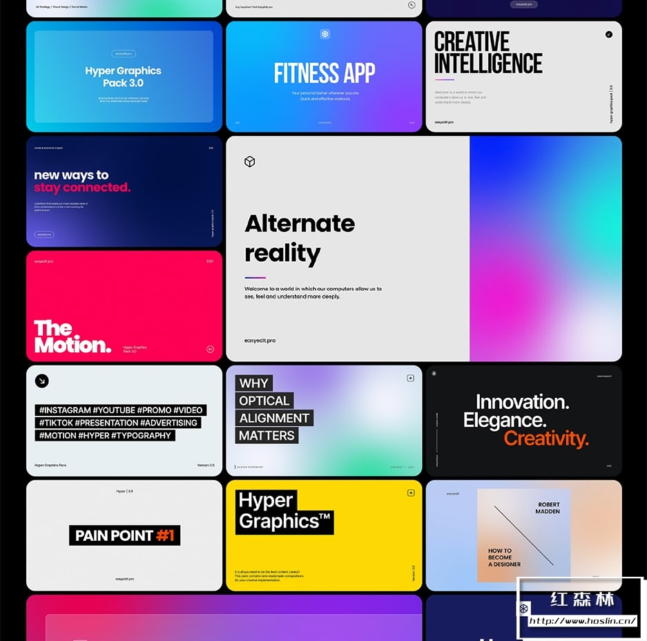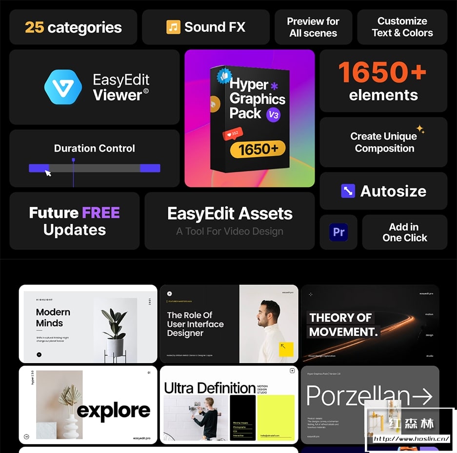 新的 Hyper 就在这里 – 我们添加了全新的元素,考虑到实际设计、排版和 UI 趋势。Hyper 包含从社交媒体到背景的⚡️ 25 个类别。从超过 ⭐️ 1650 个Premiere Pro 作品中进行选择:版式、订阅和 UI 元素。您可以根据自己的喜好组合元素——它们可以完美组合在一起。控制模板的⚡持续时间,使用⚡自动调整所需格式,调整颜色。您可以将 Hyper 用于促销、演示、社交媒体内容或故事、Youtube 以及更多用途!