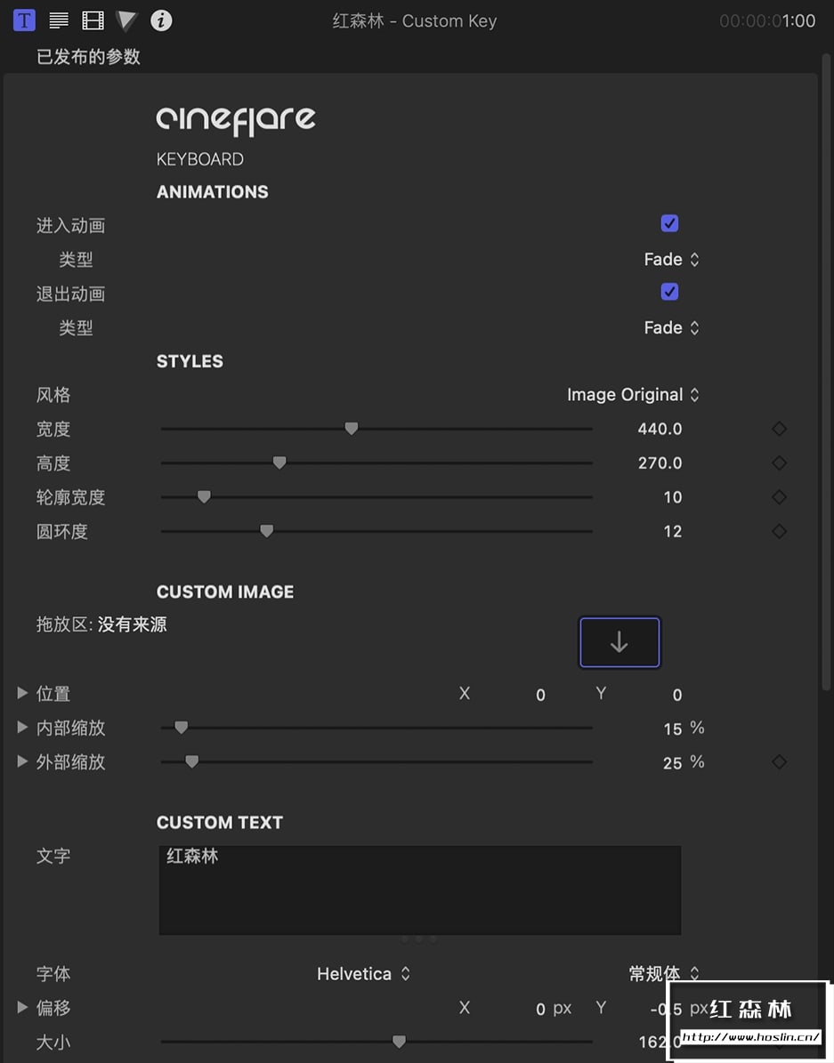 参数:我们非常自豪能为您提供一些非常出色的键盘参数。有多种选项可供选择。您可以独立控制进入和退出动画,并从六种不同的动画类型中进行选择。在样式部分,您可以选择几种不同的关键样式,并可以控制轮廓、宽度和圆度。在颜色部分中,您可以控制填充、轮廓和字符颜色。您还可以独立控制所有这三个的不透明度。在属性部分,您可以控制位置、比例和旋转。我们最喜欢的功能之一是“捕捉”复选框。该框默认处于选中状态,但您可以根据需要取消选中它。通过捕捉功能,您可以轻松排列各种按键,使它们在 X 和 Y 坐标中捕捉到同一平面!
