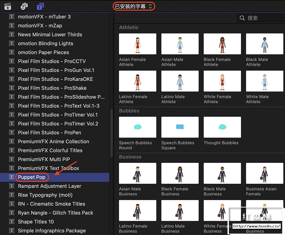 Puppet Pop 是一个包含 187 个动画木偶、28 个动画背景和 3 个动画语音和思想气泡的包,非常适合在 Final Cut Pro 中创建讲解视频。