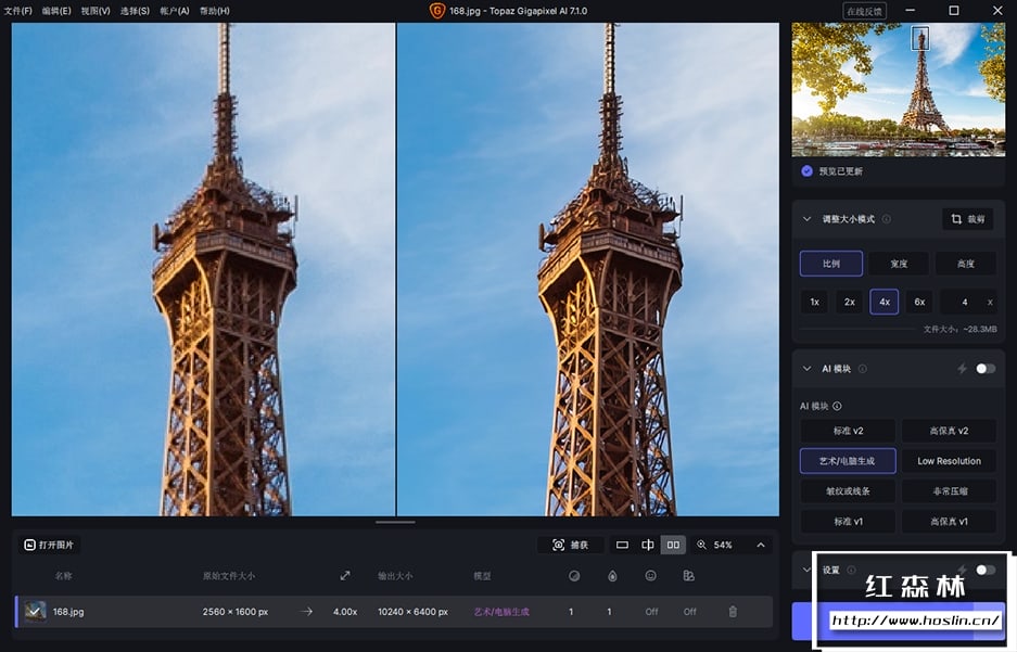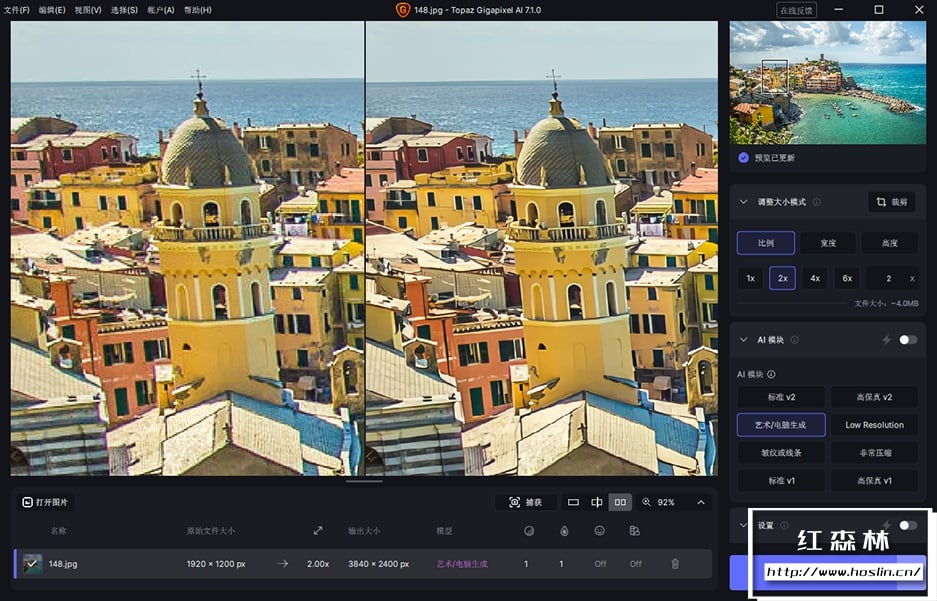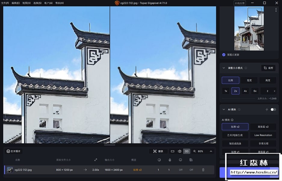当您将一张低分辨率图像导入 Gigapixel AI 并选择放大倍数(最高可达600%)后,软件并非简单地拉伸像素,而是启动其AI模型进行分析。它会: