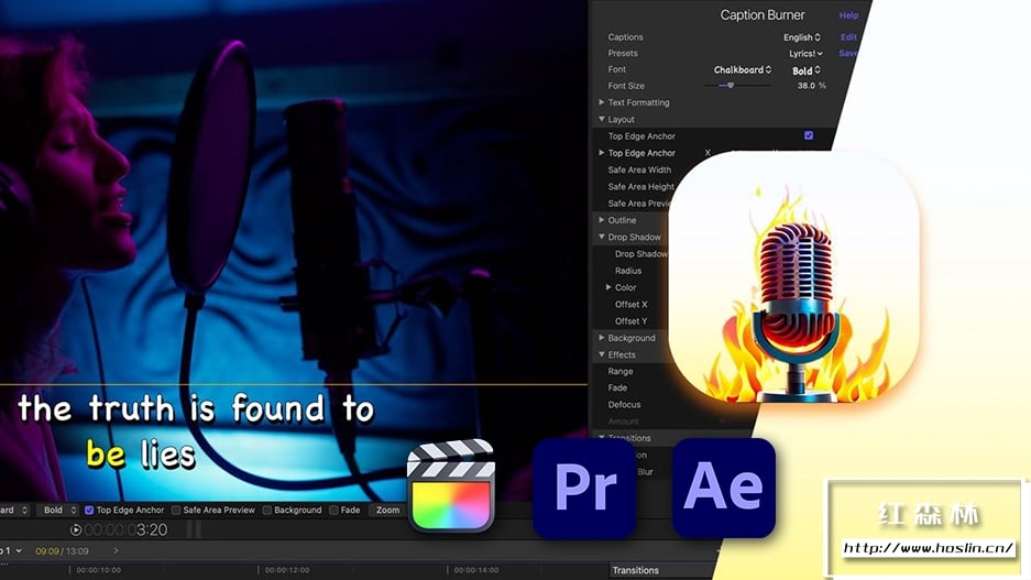 Caption Burner是Final Cut Pro、Premiere Pro、After Effects和Motion的插件,可让您将字幕和副标题刻录到视频中。Caption Burner 有助于为 Instagram® 等不允许将字幕信息作为元数据提交的平台提供视频。