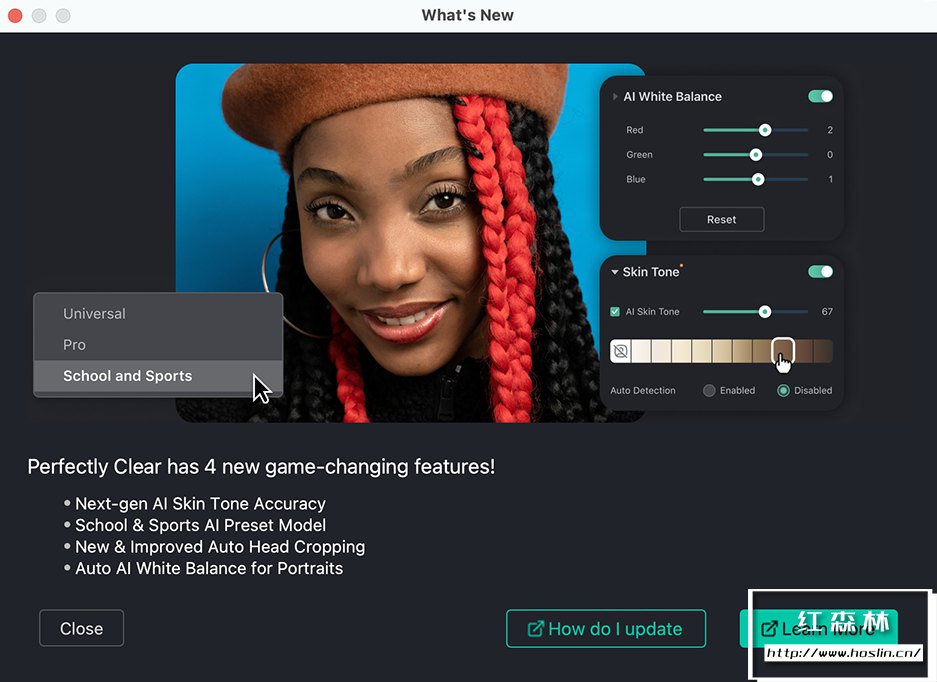 Perfectly Clear 集成了三项新的AI 图像增强创新: 1. AI 预设选择- 我们将使用 AI 分析图像内容、识别光照条件并对场景进行分类以应用最佳校正. 2. AI 图像增强- 在每年修正超过 510 亿张照片后,我们利用我们的知识创建了一个经过专业照片编辑训练的深度学习系统。 3. AI 肤色准确度- 我们的 AI 深度学习系统已经过全方位肤色训练,以确保完全准确。