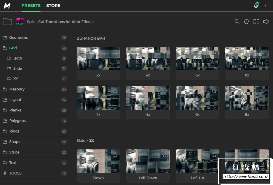 Split Handy Transitions 经过精心设计,因此对于所有技能水平来说都非常易于使用 – 在两个场景的交界处放置一个过渡层,一切都准备就绪。所有过渡都无需进行预合成或媒体占位符。相反,它会转换放置在过渡层下方的所有内容。Split Handy Transitions 共拥有超过 400 个动态过渡,支持高达 4K 的任何分辨率,支持任何纵横比,无论方向如何 – 纵向或横向。使用简单,包含视频教程!