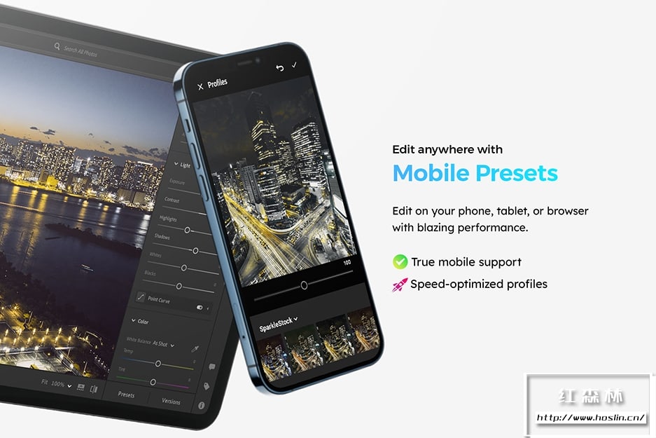 - ✔️ 可与 Lightroom 桌面版、移动版和 Web 版配合使用。