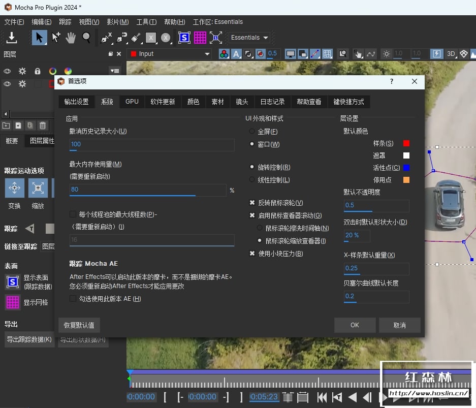 - 从插件对话框切换分辨率:在 After Effects 中打开 Mocha 时的全分辨率切换选项