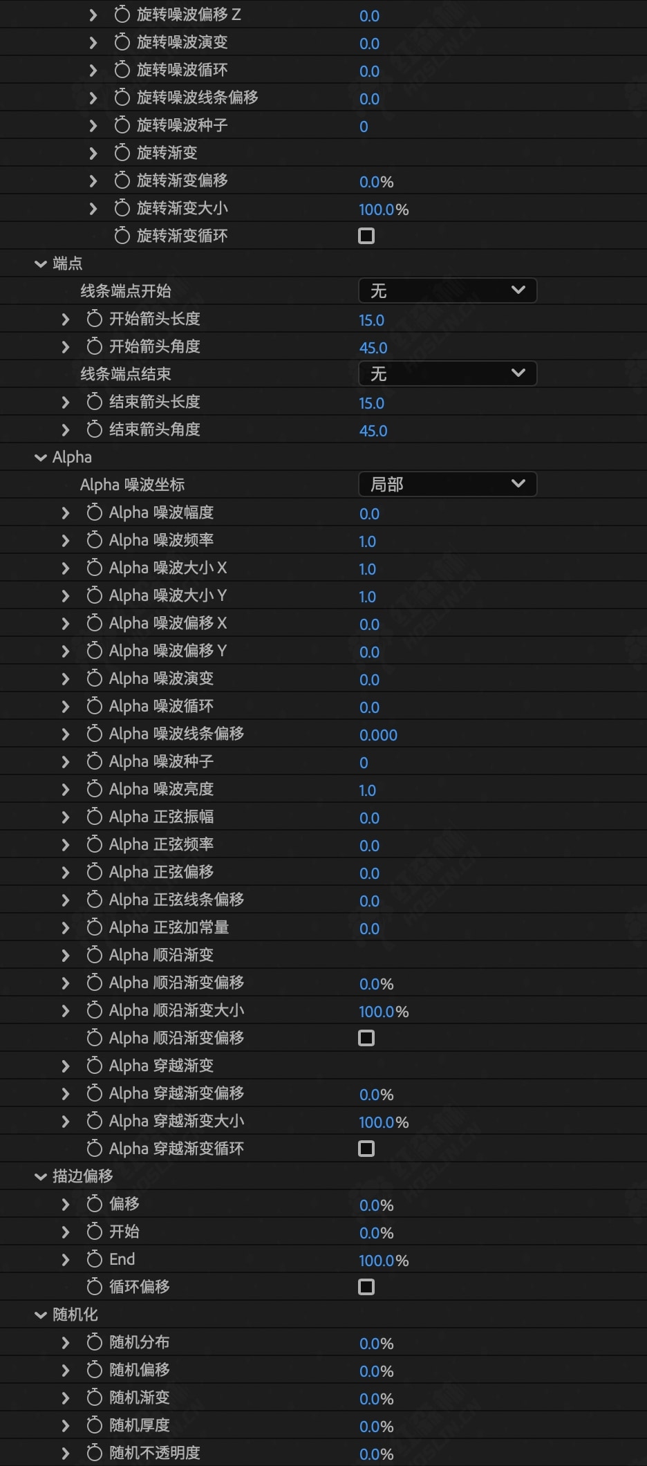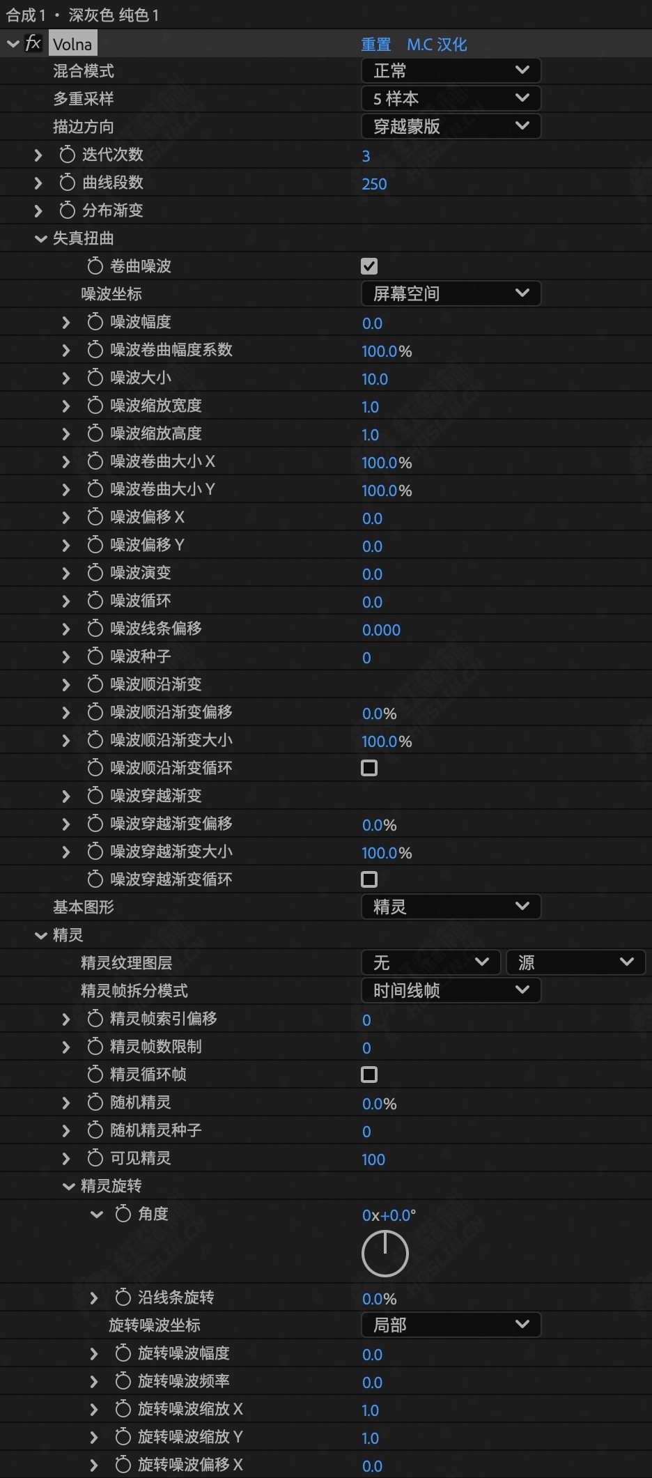 Volna 是 After Effects 的高级笔画插件。带有内置箭头、噪声失真、渐变和混合工具,它使用蒙版来绘制笔触。它使用一个或两个蒙版,并将它们混合成具有多个笔划的新形状。每个笔划都可以用渐变填充,用柏林噪声或正弦函数扭曲。笔画粗细可以通过斜坡控制进行调整。笔划可以是线或点。笔划末端可以有参数箭头。许多随机化控件有助于添加独特的外观。