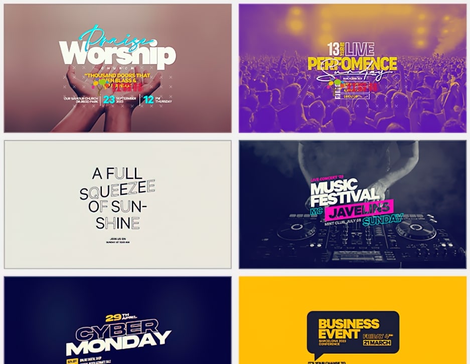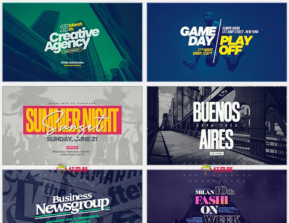 33个动态设计文字标题排版动画,每个标题的单独控件,用于编辑标题样式的全局控件。这是一套组织良好的模板,无需插件。