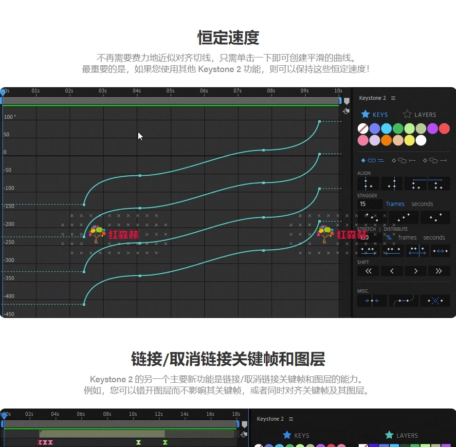 - 链接/取消链接选项:通过链接和取消链接关键帧和图层的选项,实现更大的灵活性。