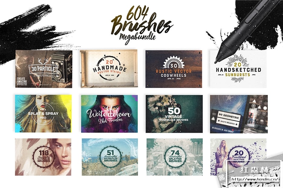 我们很自豪地推出 604 个 Photoshop 画笔大包,该包包含 Layerform 团队在过去几年中制作的 12 套高级 Photoshop 画笔,包括飞溅画笔、水彩画、咖啡渍、旭日、粒子效果和复古/复古画笔等所有画笔效果笔刷!