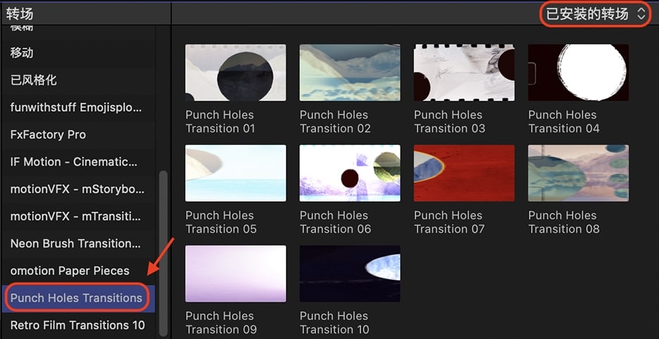 插件 Punch Holes Transitions 包含 10 个带打孔和影片元素的转场效果。您可以编辑和自定义颜色和媒体占位符。它包含 2 个宽高比:水平和垂直。您可以在视频的开头、中间和结尾处使用它们。使用简单,包含视频教程。
