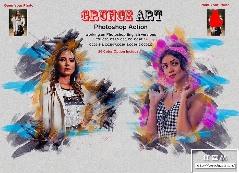 此动作旨在将您的照片转变为真正的垃圾艺术外观。有了这个专业包,您可以将普通照片变成非凡的图像。易于定制,无损效果。在此操作中,您将获得 20 种不同的颜色选项。您可以非常轻松地更改画笔颜色或进行任何调整。此动作仅支持英文版 Photoshop CC或更高版本