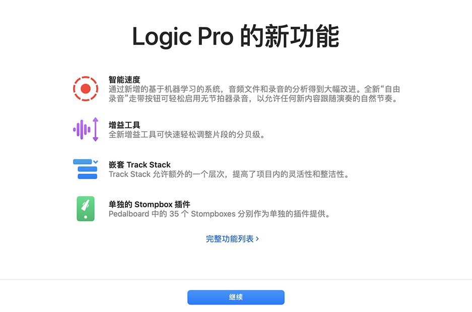 - 更多详细信息查看:Logic Pro 发行说明