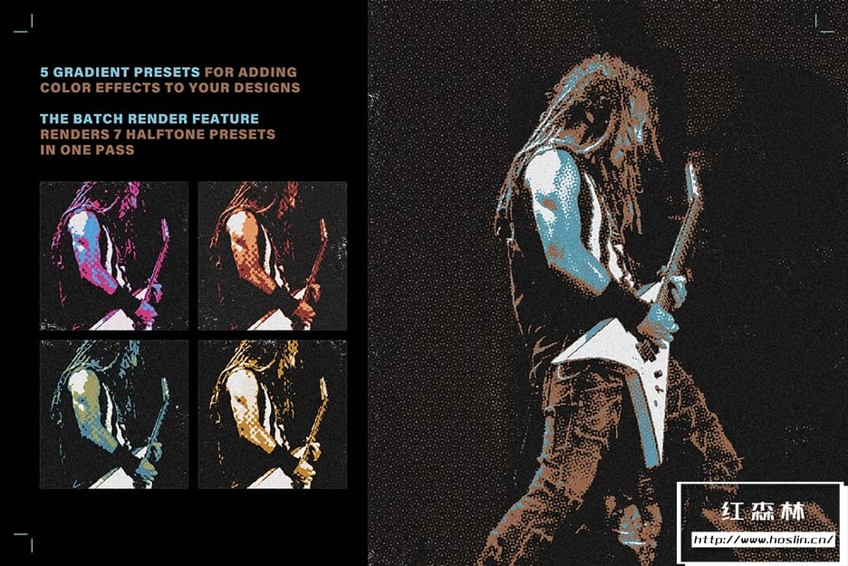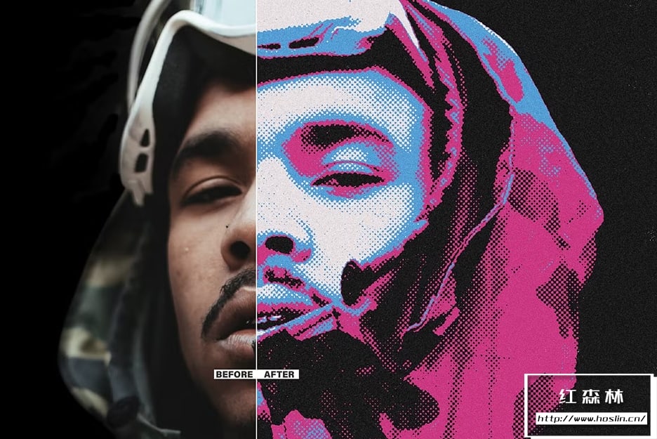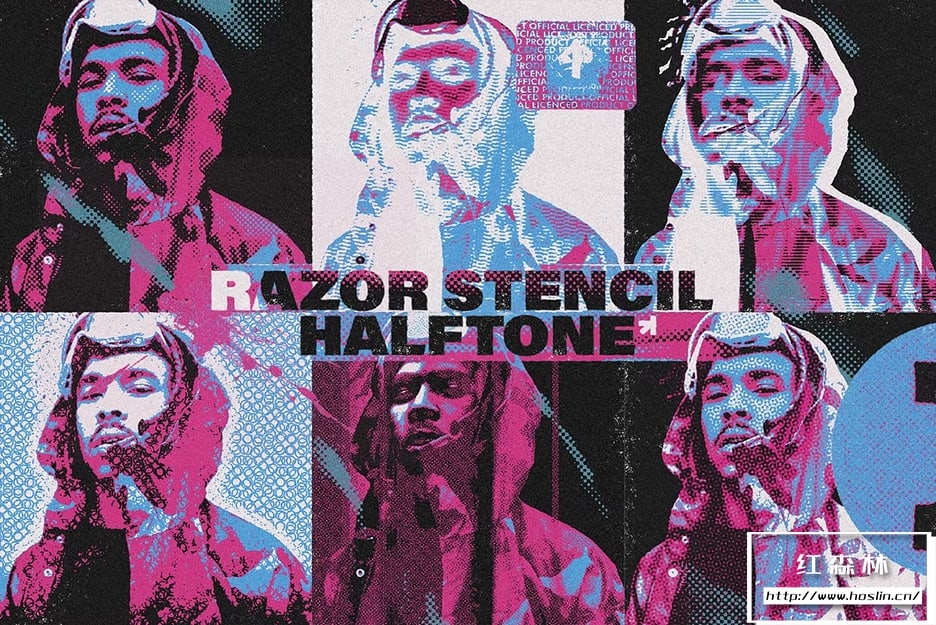 Razor 模板半色调操作可生成涂鸦喷漆和模板半色调效果,让您可以为您的设计添加街头文化氛围。这款强大的处理工具可创建粗糙磨损的纹理和覆盖层,为您提供无限的选择,以逼真的数字方式刮擦和扭曲您的图像。