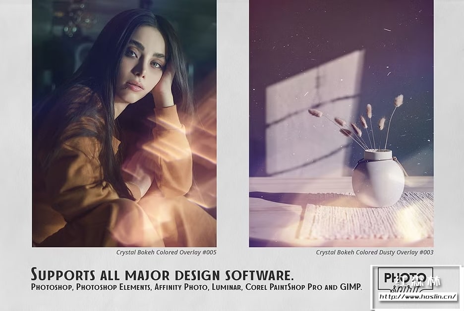 80 种水晶散景效果叠加和尘埃纹理的华丽集合,确保您的照片获得新的魅力、艺术性和情感性。