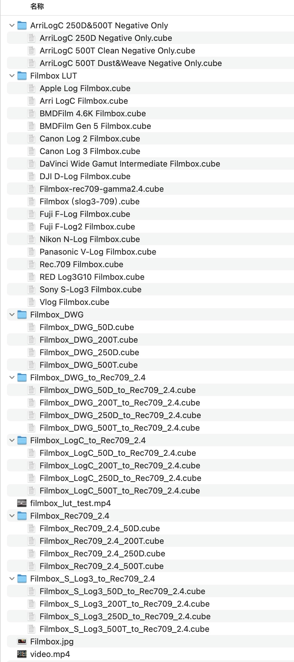 请注意,Filmbox LUT 不是Filmbox 插件本身。他们是包含来自官方 Filmbox 包的 18 个 LUT(.cube)+ ArriLogC 250D&500T (仅负片),非常易于使用。