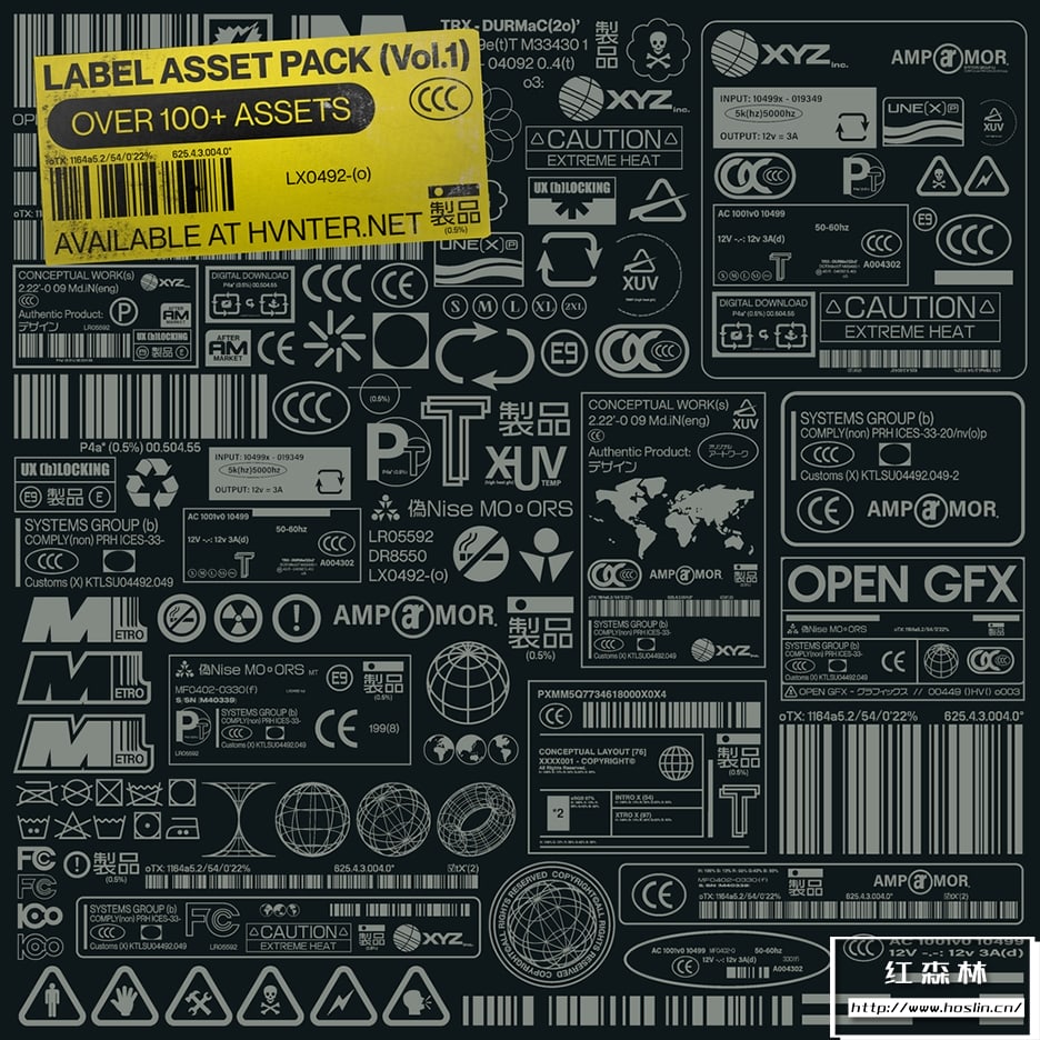 Hvnter – Label Asset Pack (vol.1) 标签资产包。包括107个工业主题标签资产。文件格式: